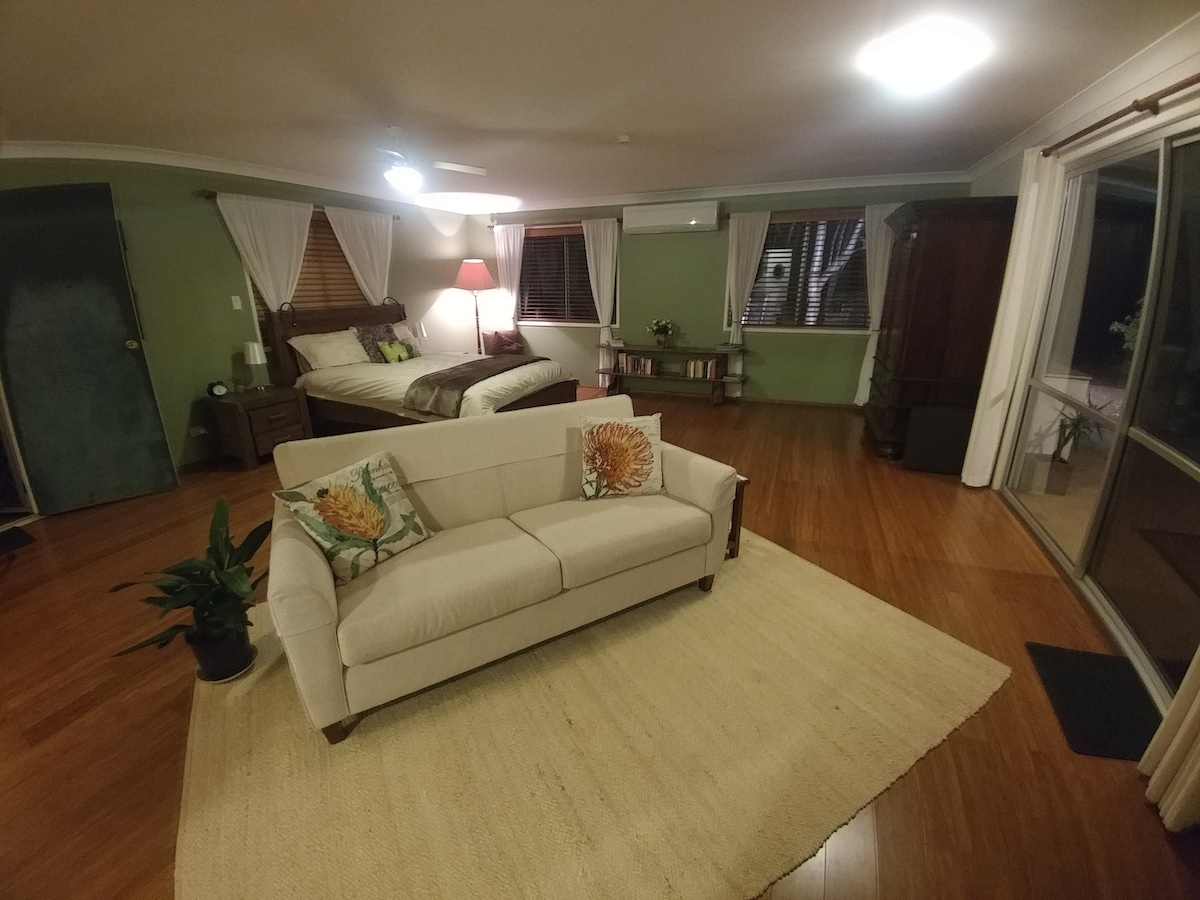 This fully self contained granny flat is set on acreage. 10 minutes from Ipswich, Close to Rail. 15 minutes to Willowbank and Queensland Raceway. 30 minutes from Hiddenvale MTB. Gold Coast, Sunshine Coast and Toowoomba all around 1 hour drive. There is ample parking down the side of the property for large vehicles and trailers. Our family home is located adjacent to the granny flat. We are available whenever required. Within reason. The space is yours to enjoy along with our swimming pool.