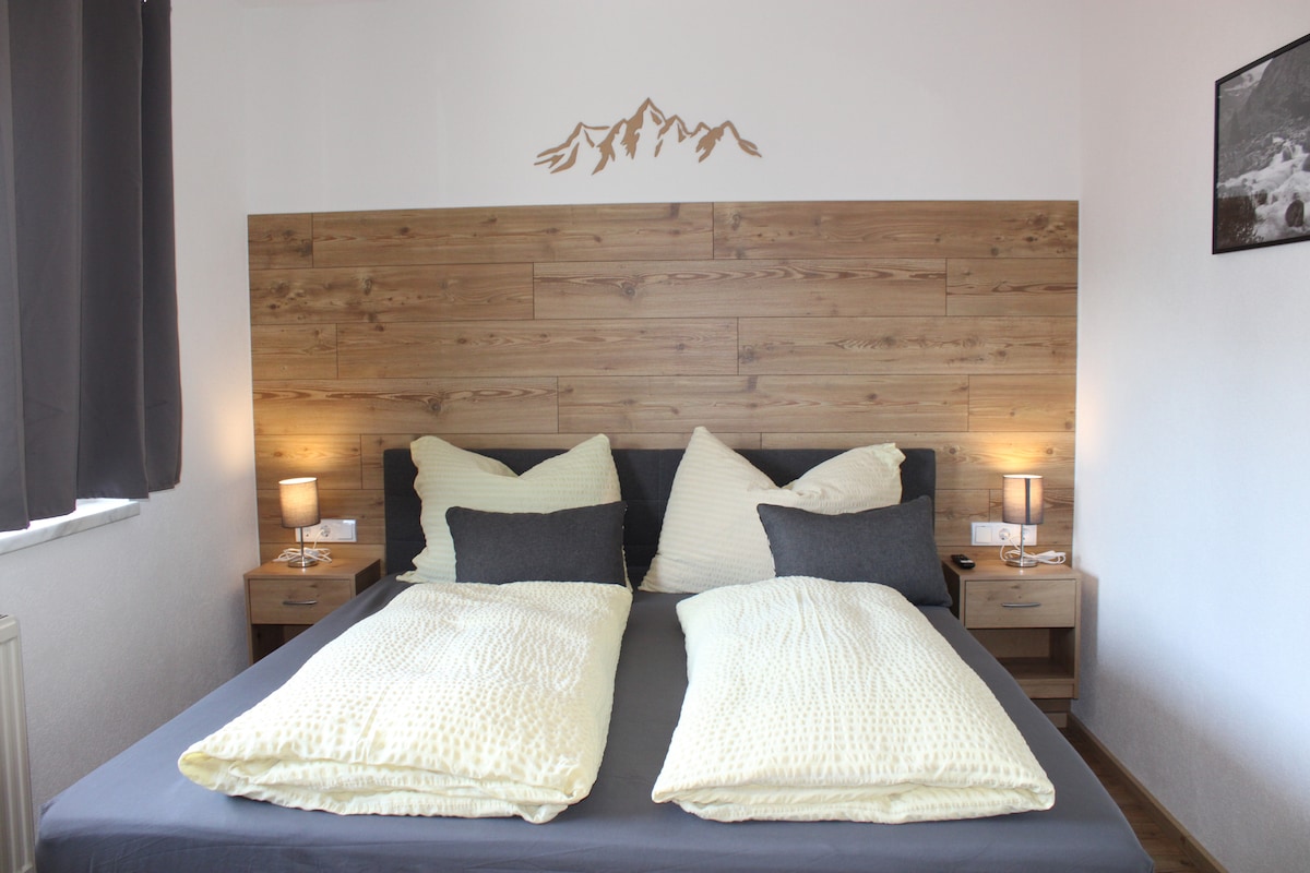 Bagong Maliit na Kusina na may frig, microwave, takure, filter na coffee maker. Modernong banyo na may shower, silid - tulugan na may 180cm na higaan, Maaraw na Terrace na may magagandang tanawin ng aming mga bundok, sa tag - araw ay may posibilidad na mag - BBQ, ang Mayrhofen at Zell am Ziller ay 4 Km lamang ang layo. 5 -7 minuto ang layo ng kotse, 1 Oras sa pamamagitan ng paglalakad. Pakitandaan: Ang Kurtax € 2,20 (mula sa 15 Taon) bawat Tao, bawat Araw ay dapat bayaran nang direkta sa iyong host. Ibibigay niya sa iyo ang iyong card ng bisita.