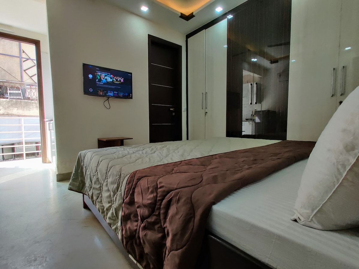 Maligayang pagdating sa aming naka - istilong pribadong kuwarto na may nakalakip na banyo at pinaghahatiang kusina na nilagyan ng lahat ng modernong amenidad. Matatagpuan ang aming property sa Ashram chowk na napaka - maginhawang lokasyon para makapunta sa paligid ng Delhi at may koneksyon sa lahat ng uri ng pampublikong transportasyon na 2 minutong lakad lang ang layo mula sa istasyon ng metro ng Ashram. Malapit ang lugar na ito sa mga dapat makita na destinasyon tulad ng khan market, Lajpat Nagar, CP, India Gate,Bharat Mandpam, Dargah Hazrat Nizamuddin atbp.