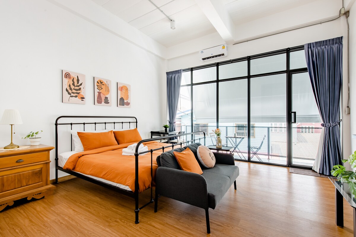 Maligayang pagdating sa aming komportableng studio accommodation sa Bangkok! Nag - aalok ang ganap na inayos at komportableng tuluyan na ito ng studio bedroom na may kusinang kumpleto sa kagamitan, kaya perpekto ito para sa mga solong biyahero o mag - asawa. Matatagpuan 7 minutong lakad lang ang layo mula sa MRT Ladprao, madali mong maa - explore ang masiglang lungsod. Bukod pa rito, may mga maginhawang amenidad tulad ng 7 -11 store sa malapit at mga kamangha - manghang pasilidad kabilang ang swimming pool, sauna, fitness gym at library. Tiyak na magiging kasiya - siya at maginhawa ang iyong pamamalagi.