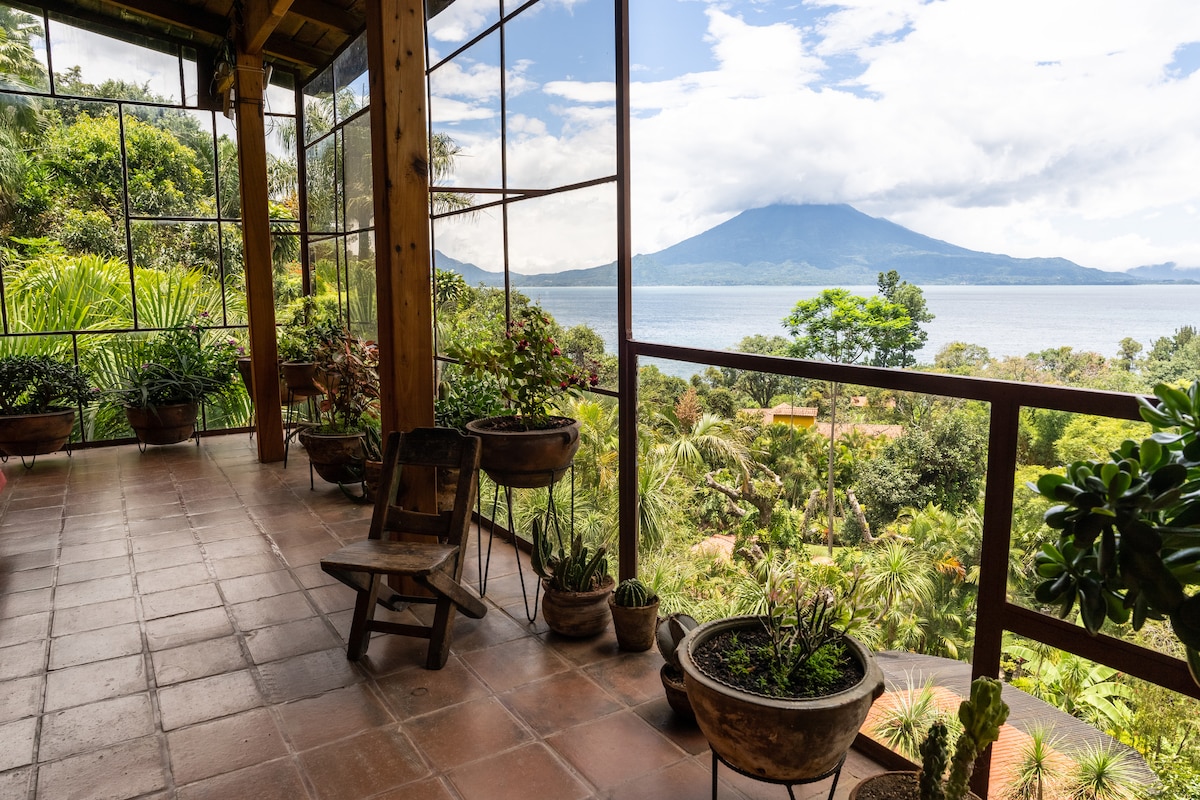 Our cozy guest cottage is located right on the lake shore so you'll enjoy de magnificent view of Lake Atitlan and its three stunning volcanoes. You just need to walk through our beautiful garden and dip straight into the refreshing waters of the majestic lake. Or if you're interested in exploring other towns around the lake, you can easily take a boat because we have a public dock right in front of our property! We are located in a very peaceful and safe area of Santa Cruz.