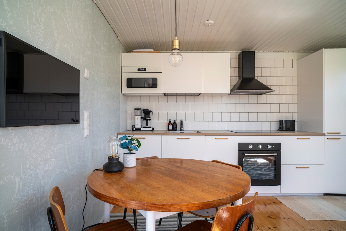 Nasa tabi ng dagat ang cottage sa tabing dagat. Maganda talaga ang tanawin dahil tanaw nito ang dagat hanggang sa abot - tanaw. Puwede kang maglakad - lakad o mag - swimming. Marahil sa taglamig sa paglalakad sa yelo. Perpektong lugar kung may mga gamit sa pangingisda, o canoe o sup - board. Ang cottage ay gumagana nang maayos para sa pamilya, mag - asawa o naglalakbay lamang nang mag - isa. Maayos din ang lugar sa maliliit na alagang hayop na hindi malaglag. Isang sauna at makatuwirang dami ng kahoy na walang bayad para painitin ang sauna at smoker +fireplace sa labas.