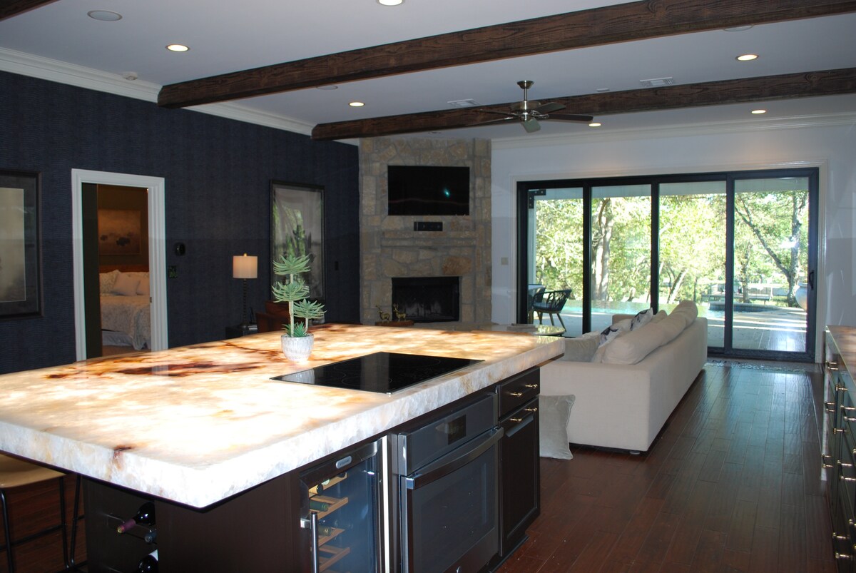 Ang aming bahay ay isang pribadong oasis. Isang santuwaryo na matatagpuan sa wing dam ng Comal River, magkakaroon ka ng pagkakataong maranasan ang ilog tulad ng dati. Lumangoy papunta sa Schlitterbahn Water Park, maglakad papunta sa bayan ng New Braunfels at Landa Park at madaling ma - access ang MARAMI pang atraksyon sa lugar. Mainam na bakasyunan para sa iyong pamilya ang napakagandang half - home na ito. MAGILIW SA PAGKUWARANTINA na may patakaran sa pakikipag - ugnayan na walang pakikisalamuha, mararamdaman mo at ng iyong pamilya o mga bisita na ligtas silang magbakasyon dito.