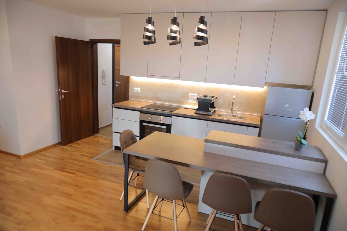 Brand new, luxury apartment 1.6 km from the city center. 10 minute walk to the famous Ohrid Lake. Supermarket is very close (3 min walking). Row of restaurants nearby. (e.g. "Biljanini Izvori," "Stazione Pizzeria," etc.). For transportation, it is also close to a bus stop with lines connecting to all of the beaches in town. Lastly, the apartment is fully furnished. It includes a full kitchen. Set up for the perfect get away. A home away from home.