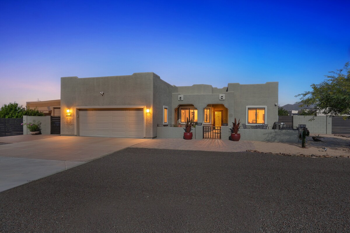 Isang na - update na kumuha sa estilo ng timog - kanluran, ang pasadyang Santa Fe - style na tuluyan na ito ay tunay na isang hiyas ng disyerto. Ang labas ay pinatingkad ng Mexican tile, chili pepper ristras, at napakagandang scape sa disyerto sa isang napakalaking, pribadong lote. Ang interior ay nagtatampok ng komportable, ngunit modernong palamuti. Bukas ang plano sa sahig at hinihikayat ang kasiyahan kung iyon ay billiards, foosball, o lounging sa hot tub o heated pool. PANGARAP ang likod - bahay! Ito ang bahay kung saan makakagawa ka ng mga alaala sa isang perpektong setting ng Arizona.