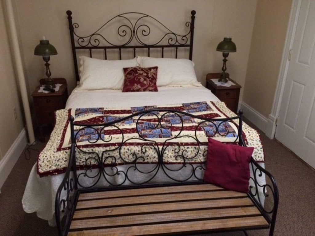 Maliwanag at komportable, nag - aalok ang kuwartong ito ng simpleng dekorasyon sa bukid na magbabalik sa iyo sa nakaraan. Nilagyan ng queen bed, dalawa ang tulugan ng kuwartong ito. Nasa silid - tulugan lang ang pinaghahatiang paliguan kung kinakailangan, pero nag - aalok ang kuwartong ito ng sarili nitong banyo at shower. Natatangi sa disenyo nito, sigurado kang magkakaroon ka ng maganda at nakakarelaks na karanasan.