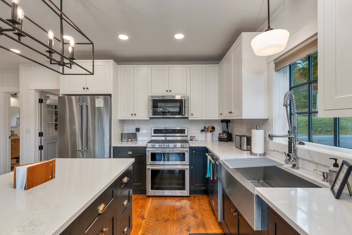 Tumakas sa isang payapang, lakeside retreat na may liblib na sun-lit deck at pribadong dock na may hindi kapani-paniwalang tanawin ng Sunrise Lake, kasama ang 4-person hot tub, at mga seasonal na amenities tulad ng pedal boat, dalawang kayaks, SUP board, gas fire table, central A/C, pellet stove, at snowshoes. Mag-enjoy sa malalapit na aktibidad tulad ng hiking, leaf peeping, skiing, at pagbisita sa mga magagandang bayan, mga lokal na ubasan at serbeserya — o simpleng pagre-relax sa magandang setting sa harap ng lawa. Ang paglubog ng araw ay maaaring hindi kapani-paniwala!