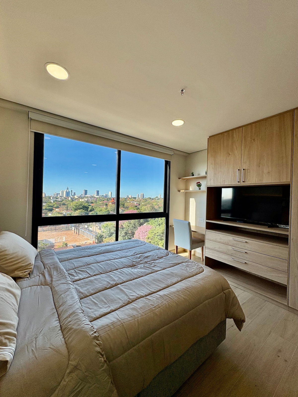 Ang bakasyunan mo na may magandang tanawin. Mag-enjoy sa moderno at maliwanag na apartment na ito, na perpekto para sa pagpapahinga o pagtatrabaho nang komportable. Matatagpuan sa ligtas at maayos na konektadong lugar, 20min mula sa lahat ng kailangan mo. May pribadong garahe ang tuluyan at may access sa terrace na may pool para makapagpahinga sa pagtatapos ng araw. Bukod pa rito, may kumportableng higaan, kumpletong kusina, WiFi, washing machine, at air conditioning. Perpekto para sa mga mag - asawa, solong biyahero, o pamamalagi sa trabaho. Naghihintay sa iyo ang iyong tuluyan sa Asunción!
