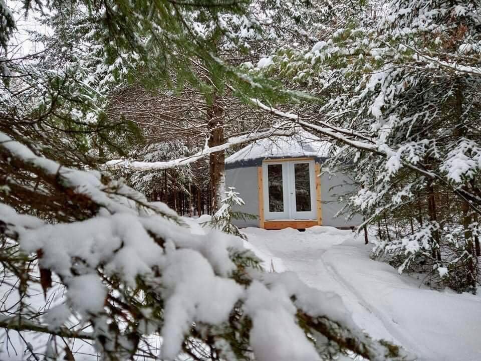 Ang aming Countryside Yurt Area ay isang natatanging karanasan sa taglamig. Puwede lang itong paupahan mula Disyembre hanggang Abril. Sa niyebe! Masisiyahan ka sa mga trail na naglalakad o sa mga snowshoe, nasisiyahan ka sa mainit na pagkain na may kusinang may kumpletong kagamitan kahit na may mga fondue na kalan! At panghuli, isang home theater sa aming higanteng screen sa harap ng fireplace? Karanasan ang vibe. Lahat ng kahoy. Rusticity, chic pero dry toilet. Ito ay maganda. Ito ay zen. Maayos ang pagkakaayos nito. Pinag - isipan na ang lahat.