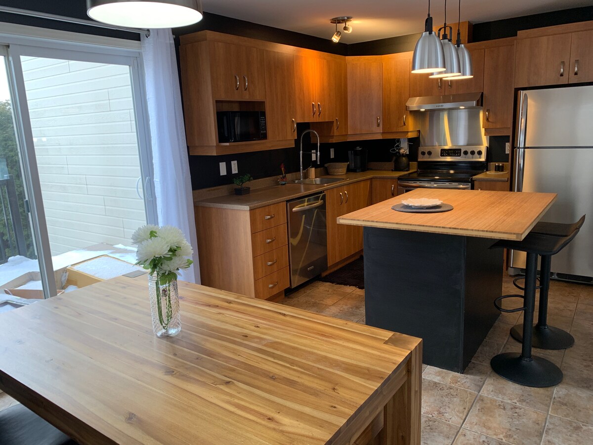 Magnifique logement spacieux tout équipé de 1200 pi2 sur 2 étages pour 4 personnes. Vous pourrez profiter d’un balcon intime avec accès à une portion de la cours. L’intérieur chaleureux avec le foyer et sa décoration soignée saura vous charmer. Deux chambres vous donnerons toute l’intimité que vous méritez. Une salle de bain et une salle d’eau incluant laveuse et sécheuse répondront à vos besoins. Entrée indépendante et grand stationnement pouvant accueillir 3 voitures.