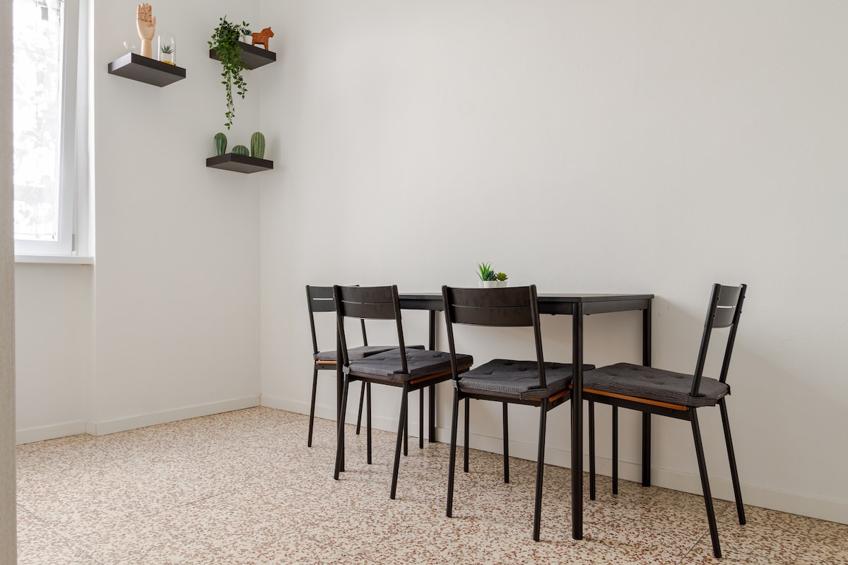 Sa isang tipikal na Old Milan railing house, isang komportableng maliwanag na apartment na may dalawang kuwarto at napaka - tahimik. Limang minutong lakad ang layo mula sa metro stop, malapit sa Fondazione Prada at ilang restawran at pub. Maayos na inayos ang apartment: ang sala na may dining area, workspace at komportableng sofa bed; ang silid - tulugan na may double bed at desk. Ang kaaya - ayang lugar sa labas para makapagpahinga at masiyahan sa katahimikan ng kalangitan at mga rooftop. Napakabilis na wifi: 420 Mbps