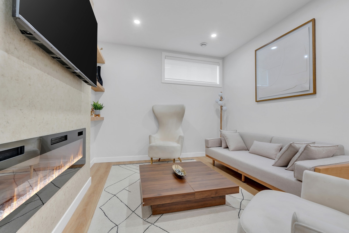 Ang Luxury Zen Retreat na ito – Ang Perpektong Getaway Mo Welcome sa pribadong suite sa basement na may 1 kuwarto at banyo. Idinisenyo ito para sa mga taong naghahangad ng malinis, tahimik, at maginhawang tuluyan. Pinagsasama - sama ng magiliw na estilo na tuluyan na ito ang kagandahan sa katahimikan, na lumilikha ng tunay na bakasyunang may inspirasyon sa Zen. ✔ Naka – istilong – Masarap na pinalamutian ng modernong hawakan ✔ Premium Comfort – Mga high – end na muwebles at plush na sapin sa higaan ✔ Kumpleto ang Kagamitan – Mga Smart TV, high - speed WiFi, at functional na kusina at marami pang iba.