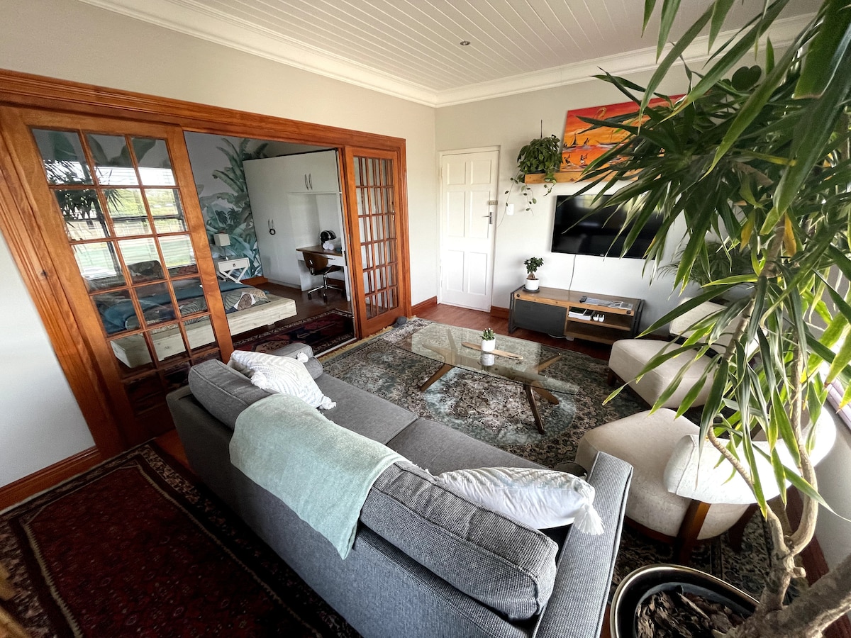 Magrelaks at mag - enjoy sa pribadong beach at walang harang na tanawin ng dagat. OFF THE GRID, NO LOAD SHEDDING. Sariling nilalaman ang unit, may sariling pasukan at privacy ito. Dalawang modernong queen bedroom na may mga banyo. May isang braai area, na may hardin para sa iyong sariling personal na paggamit at mahusay para sa mga bata. Ang Paradise Beach ay isang pribadong ligtas na ari - arian malapit sa Mykonos. May paradahan para sa 2 kotse. Halina 't maranasan ang hospitalidad sa West Coast. Sa ibaba ng apartment na nakakabit sa pangunahing bahay, kumpletong privacy.