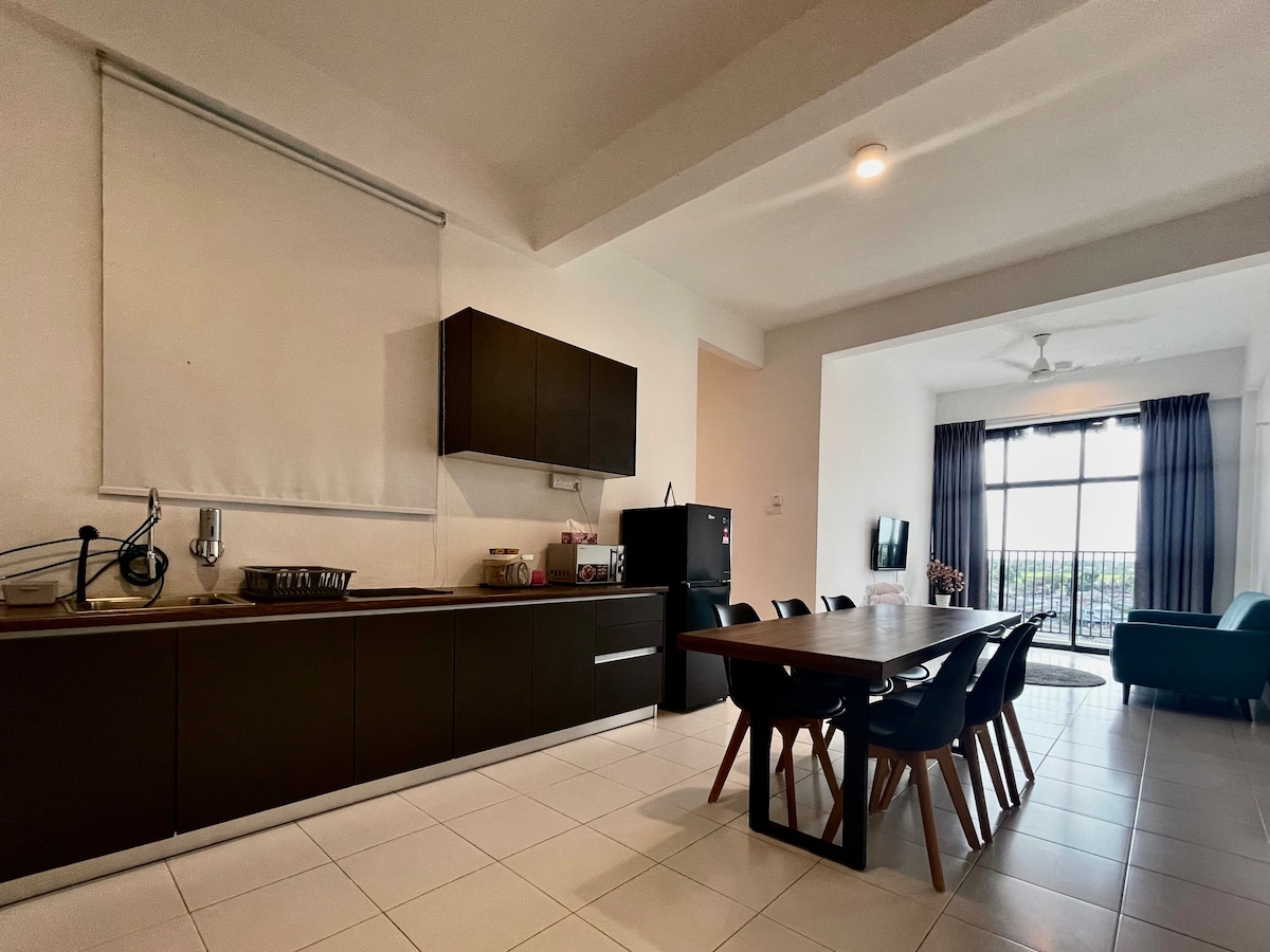The whole group will be comfortable in this spacious and unique space. Keyless smart lock door, ready with FREE internet WiFi, hot shower all bathrooms, 3 bedrooms, towels, inverter R32 aircond for living room & ALL bedrooms, CCTV surveillance on external area, Smart TV with NJOI, comfortable kitchen necessities, washer & drying rack. Beautiful paddy field view nearby, 4km from PLUS Highway Exit Alor Setar (U).