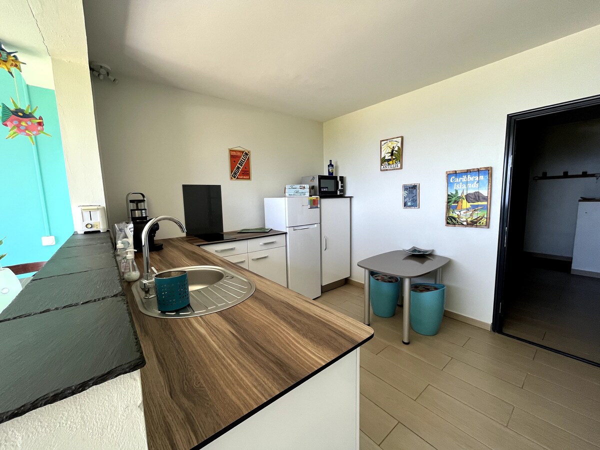 Matatagpuan sa Anse à L 'Ane, sa ground floor ng family home sa isang residensyal na lugar. Idinisenyo ang tuluyan para masiyahan sa buhay sa mga tropiko, na may bukas na kusina papunta sa dagat, sa baybayin ng Fort de France, L'Ilet Ramier. Hayaan ang iyong sarili na lulled sa pamamagitan ng tanawin at sa nakapaligid na kalmado habang tinatangkilik ang malapit sa mga beach sa timog ( Anse à L 'Ane 2 minuto ang layo, Anse Dufour, Anseire, Les Anses d' Arlet wala pang 10 minuto ang layo). Mga beach restaurant, supermarket, tabako at pindutin ang 2 mn.