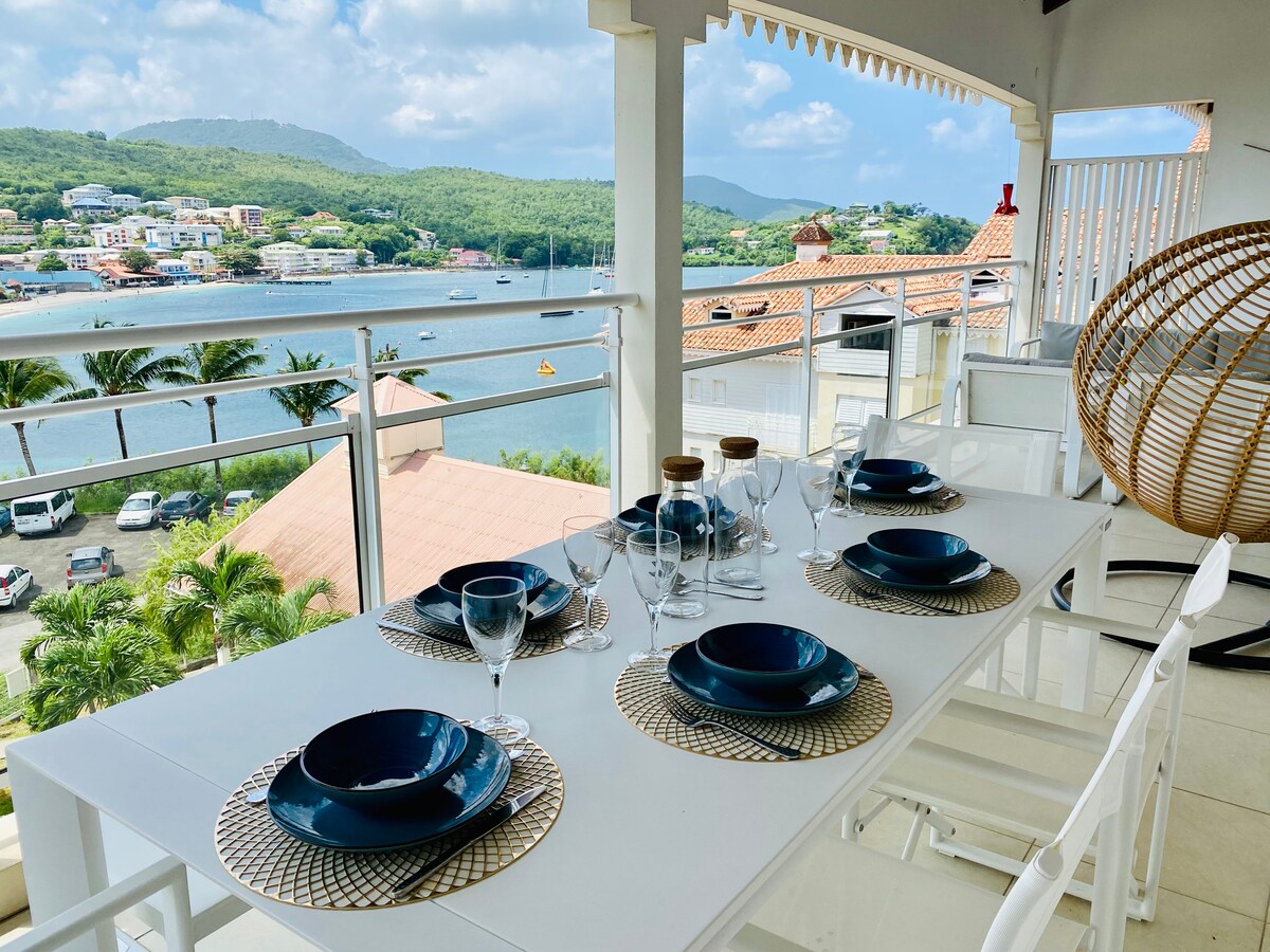 Ang apartment na ito na may mga bukas - palad na tuluyan sa ilalim ng napakahusay na nakalantad na frame nito ay kaakit - akit sa iyo sa 180° na tanawin nito sa Bay of Fort - de - France. Ang apartment na ito ay binubuo ng tatlong silid - tulugan at ang kanilang tatlong banyo na may walk - in shower. Magkakaroon ka ng mga kaaya - ayang sandali sa malaking lugar na ito. Mainam para sa panonood ng paglubog ng araw, pag - enjoy sa iyong aperitif o hapunan, pagbabasa ayon sa hangin ng kalakalan, idinisenyo ang terrace bilang sentro ng buhay ng apartment na ito.