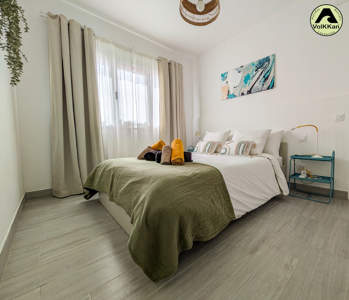 Nice bagong built 110 square meter duplex, napakaluwag at maliwanag, na matatagpuan sa isa sa mga pinakatahimik na lugar ng Caleta de Famara, sa pagitan ng mga beach ng San Juan at Famara at 50 metro mula sa linya ng dagat. Mayroon itong dalawang silid - tulugan, sala na may kusinang kumpleto sa kagamitan, TV room na may sofa bed, dalawang banyo at napakaaliwalas na patyo, pati na rin ang labahan.