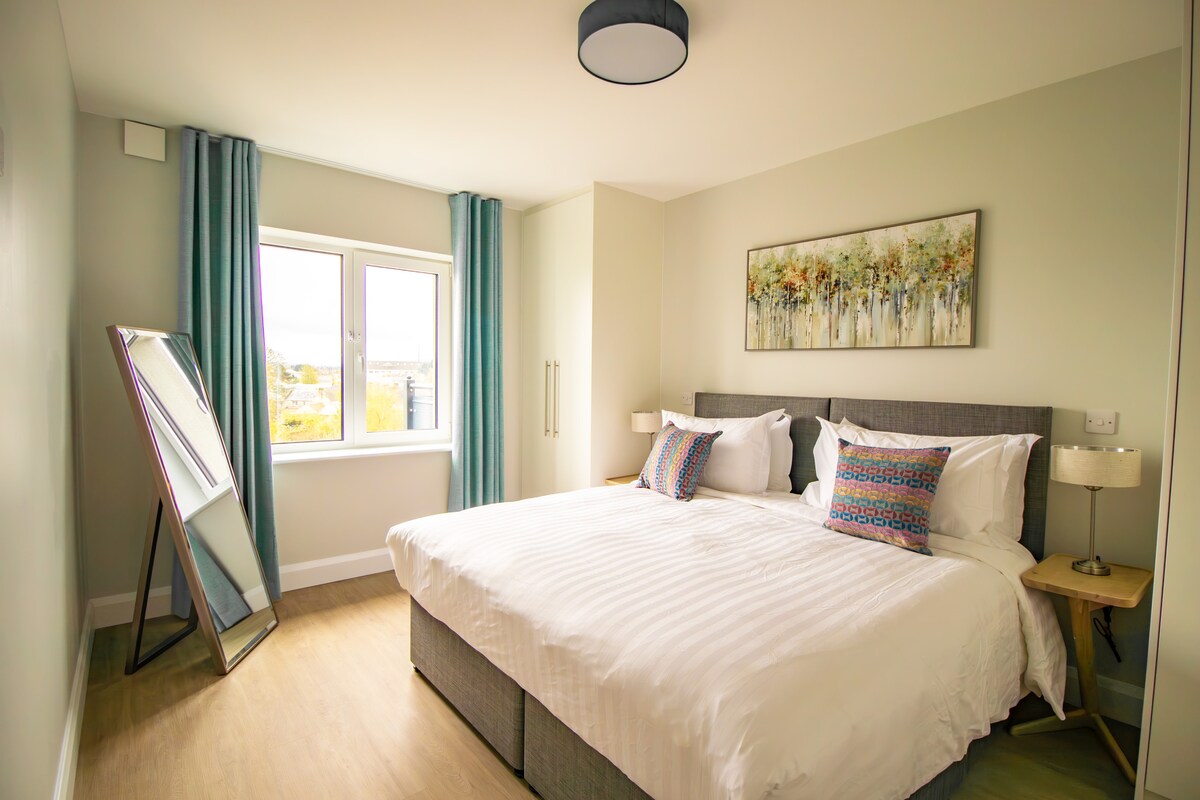 Mag - enjoy ng naka - istilong karanasan sa apartment na ito sa Main Street, Abbeyleix. Ang apartment ay nasa isang gated na komunidad - libre sa paradahan sa kalye. Itinayo ang apartment sa site ng pabrika ng karpet na kumakalat sa mga karpet para sa titanic ship. Mayroon itong sariling pribadong pasukan, na may hagdan na humahantong sa tirahan, kusina at silid - tulugan. Pinalamutian ito ng kontemporaryong estilo. Idinisenyo ito para sa 2 pero puwedeng matulog ang sofa bed sa sala/ kusina 2. tandaan na 1 banyo ang maa - access sa pamamagitan lang ng kuwarto.