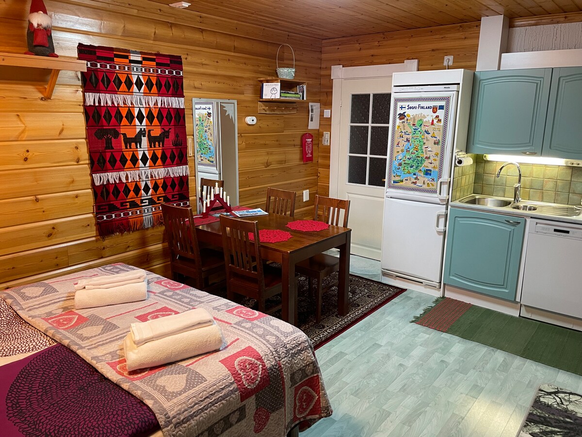 Tuklasin ang hiwaga ng Lapland mula sa komportable, pribado, at sulit na studio na ito—ang perpektong basecamp mo para sa adventure. Mag‑enjoy sa privacy dahil may sarili kang pasukan at direktang paradahan, kaya madali ang bawat paglalakbay. Ilang hakbang lang ang layo mo sa kaakit‑akit na sentro ng bayan at 36 km lang mula sa kahanga‑hangang Luosto National Park. Pagkatapos ng ilang araw na paghahabol sa Northern Lights o pagha-hiking sa mga snowfield, bumalik sa iyong mainit at tahimik na santuwaryo, na idinisenyo para sa malalim at nakakapagpahingang pagtulog. Lapland na walang maraming turista.