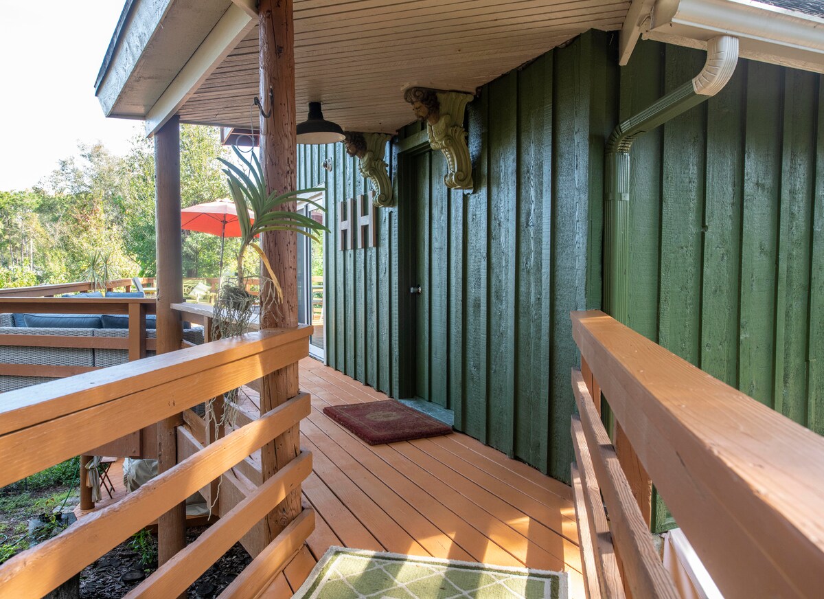 Matatagpuan sa gitna ng Clearwater, ang Hawk's Nest ay isang mapayapa at pribadong artist na nagpapaalala sa Tennessee o North Carolina. Napapalibutan ng kalikasan, parang nakatira sa bahay sa puno! Magugustuhan ng mga tagahanga ng sports na malapit sa dalawang stadium ng Spring Training at 25 minuto lang mula kay Raymond James. 20 minuto lang papunta sa beach, at nasa gitna ito para sa pamimili at mga aktibidad. Ligtas at may bakod na property na nag‑aalok ng kapayapaan at kaginhawaan. Hindi malilimutan! Available din para sa mas mahabang pamamalagi.