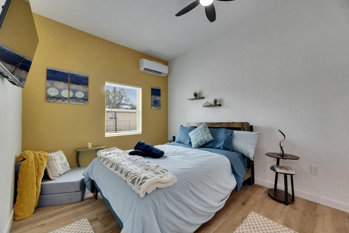 Panandaliang Matutuluyang Studio na Malapit sa Beach — Mag-relax, Magpahinga, at Mag-enjoy nang may Privacy Magbakasyon sa aming komportableng studio na idinisenyo para sa mga bakasyon kasama ang mga kaibigan, romantikong bakasyon, o kahit na isang produktibong business trip — lahat ay 3 milya lamang mula sa magagandang baybayin ng Gulf. Lumabas at magrelaks sa pribadong bakuran na parang oasis na may maaraw at may lilim na parte para sa iyo. Mag‑enjoy sa tahimik na hardin, komportableng outdoor na lugar para kumain, at BBQ grill na perpekto para sa mga nakakarelaks na gabi sa bahay. Sa loob, y