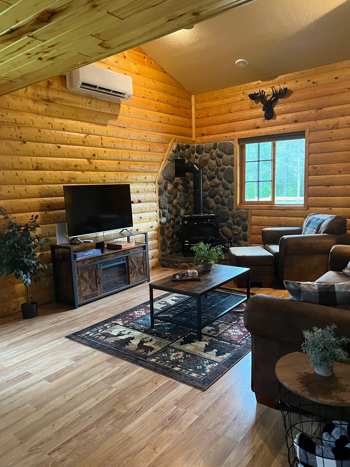 Update: Nagpasya kaming ibenta ang minamahal naming cabin na ito at lumipat nang mas malapit sa aming mga apo. Setyembre 2026 ang huling buwan para magpareserba. Klasiko at vintage na log cabin sa 2.5 acre sa tabi mismo ng Lake Superior—isang komportableng pagbalik sa nakaraan! 250 ft. na baybaying may batong saligan. 3 Kuwarto: 2 Queen, 1 Double. 3/4 na banyo, kusina, at fireplace sa loob. Sa labas: may ihawan na gas at uling, firepit, kahoy, duyan, at mesang pang‑piknik. Para sa 2 may sapat na gulang ang presyo kada gabi. May bayarin na $10 kada gabi para sa bawat dagdag na bisita.