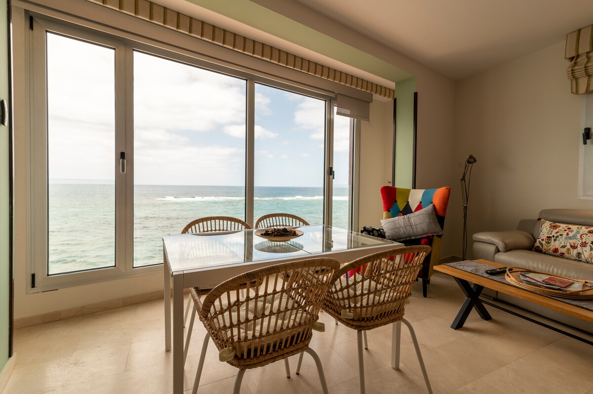 Masiyahan sa malawak na terrace sa pinakamagandang lugar ng beach ng Las Canteras. Sa unang linya ng beach, matulog nang may tunog ng mga alon ng dagat! sa gitna, sa tabi ng mga supermarket, 24 na oras, lokal at internasyonal na komersyo, ang pinakamagagandang restawran. Ang apartment ay perpekto para sa mga mag - asawa, pamilya at sinumang gustong masiyahan sa kanilang pamamalagi sa amin. Ikalulugod naming payuhan ka at irekomenda kung ano ang kailangan mo para masiyahan sa magandang pamamalagi.