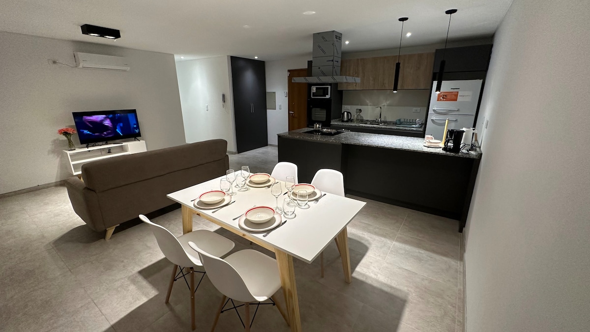 Magrelaks sa banal na bagong tuluyan na ito, na na - renovate nang may estilo, kalidad at disenyo. Pinakamainam na lokasyon sa tahimik na sentrikong residensyal na kapitbahayan na napapalibutan ng mga pamilihan at halaman. Itinatampok namin ang lapit nito sa aming malaking parke sa San Martin, na mainam para sa pag - eehersisyo at sa kilalang gastronomic Avenue. High - end Simmons brand new king box spring, para makapagpahinga nang komportable. Sa ikalawang palapag na may balkonahe. May mga bintana ang lahat ng kuwarto May mga bisikleta Sariling pag - check in gamit ang natatanging code 2 Air conditioned na may hot - cold split air