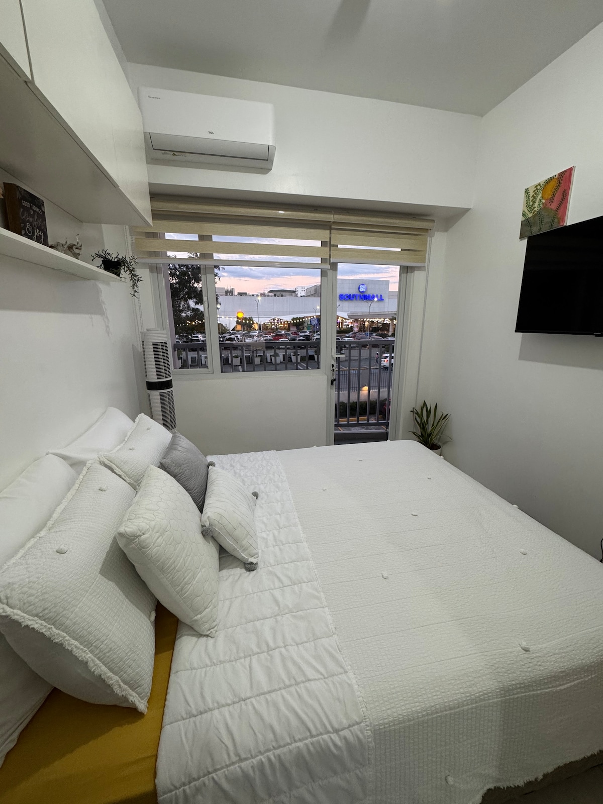 Enjoy your staycation at our peaceful One bedroom condominium unit located beside SM southmall Las Pinas. Features: 100 mbps fast unlimited internet. 100% assurance that room and furnitures are clean and disinfected. 24/7 Security. Very Comfortable mattress and linens. Smart TV with NETFLIX and youtube. Microwave and kitchen utensils. Hygiene kit and towels provided. Other things to note: Swimming pool for adults and kids 150/day and 300/day on holidays. Overnight parking 300/night