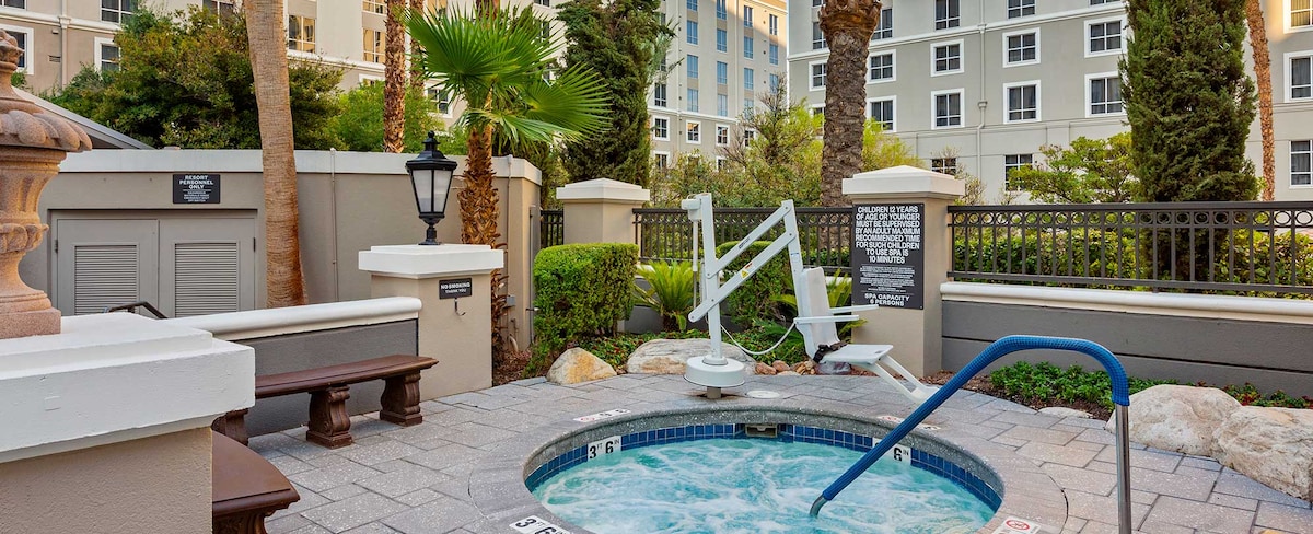 Isang milya lang ang layo ng bakasyunan sa Mediterranean - style na bakasyunan mula sa Las Vegas Strip, nag - aalok ang tatlong tore ng mga pambihirang tanawin ng nakasisilaw na skyline ng Las Vegas, mga bundok sa disyerto, at luntiang courtyard ng resort. Lounge sa tabi ng pool ng resort, kumuha ng kape mula sa on - site na Starbucks, o kumuha ng makakain. Sa labas ng resort, puwede mong tangkilikin ang outdoor fun sa mga kaakit - akit na lokasyon tulad ng Grand Canyon, Lake Mead, at Red Rock Canyon. Plus, mahuli ang sikat na fountain show sa Bellagio.