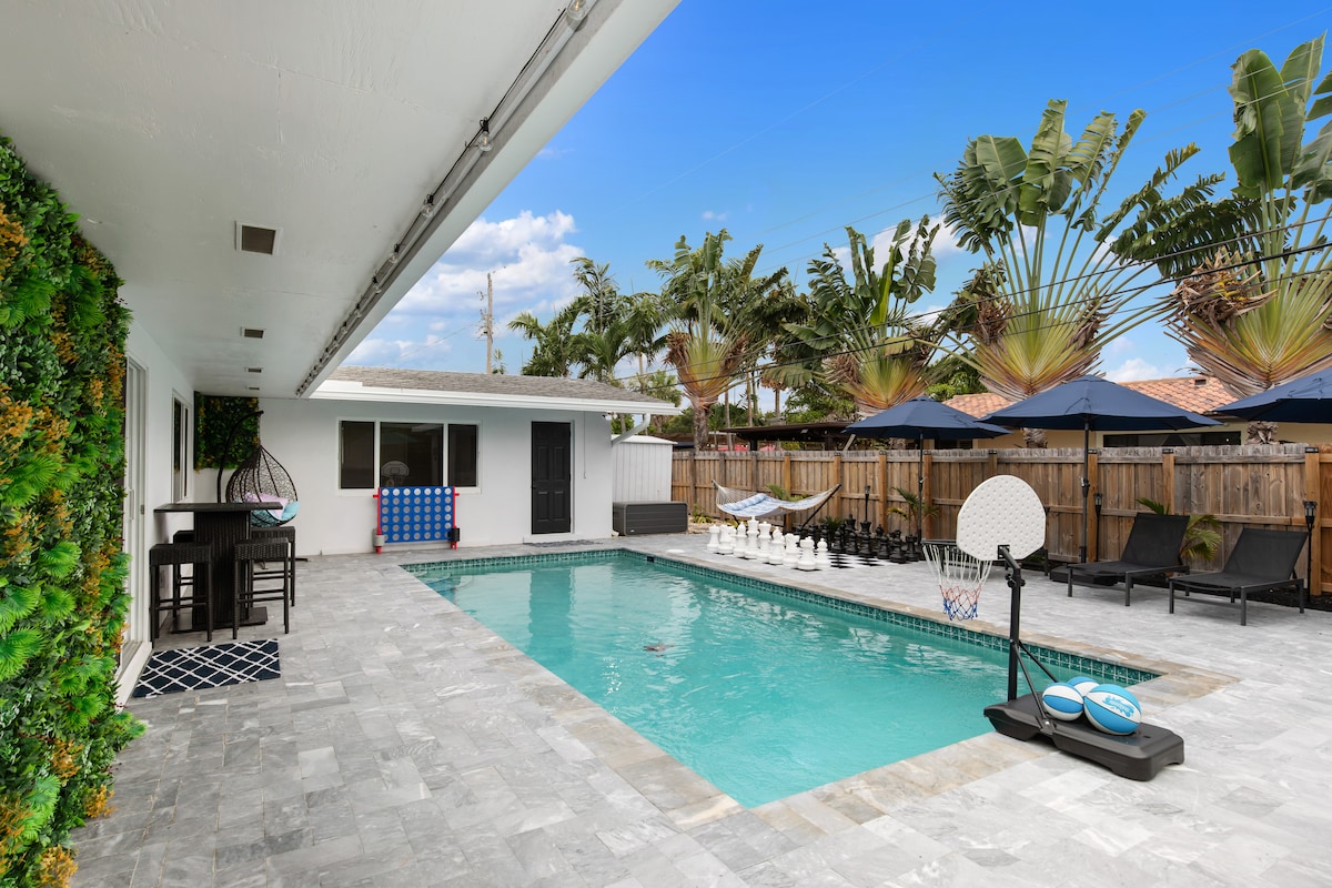 Welcome sa Sunhouse, ang pribadong oasis mong may pool na nasa perpektong lokasyon: 1 milya lang mula sa beach at sa Pompano Beach Fishing Village! Ang bahay na ito ang perpektong bakasyunan sa Florida na mayroon ng lahat ng kailangan mo at pati na ng sarili mong (MALAKING) luxury na may heating na pool! Magrelaks sa likod - bahay na may mga komportableng lounger, adirondack na upuan, BBQ, at mga laruan sa pool. Gusto mo bang mag - explore? Sumakay sa aming mga bisikleta para sa isang mabilis na 10 minutong biyahe papunta sa isa sa mga pinakamagagandang beach sa Florida, kung saan makakahanap ka ng magagandang restawran at tindahan!