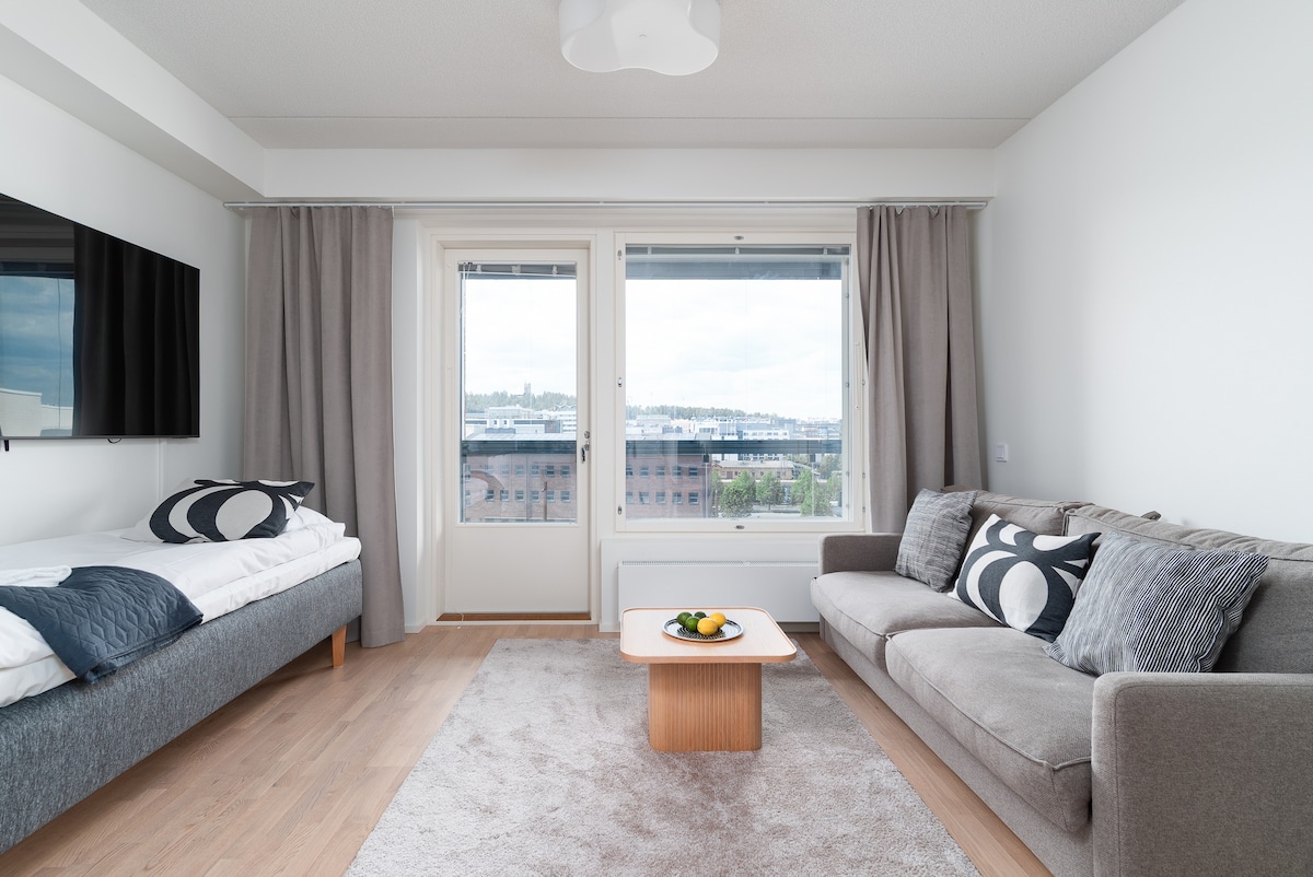 Makapangyarihang apartment na may isang kuwarto sa atmospera sa tabi ng downtown. Mapayapa ngunit sentral na lokasyon, malapit sa mga tindahan at restawran sa downtown isang milyang lakad. JAMK sa katabing property. Magandang rally accommodation, EK Harju 700 metro ang layo. May sariling paradahan ang apartment na may mga heating pole sa bakuran. Matatapon lang sa bato ang Tuomiojärvi beach at mga jogging trail. Puwede ka ring mag - enjoy sa labas sa sarili mong covered terrace. Kapag mas maraming gabi kang nagbu - book, mas mura ang presyo!