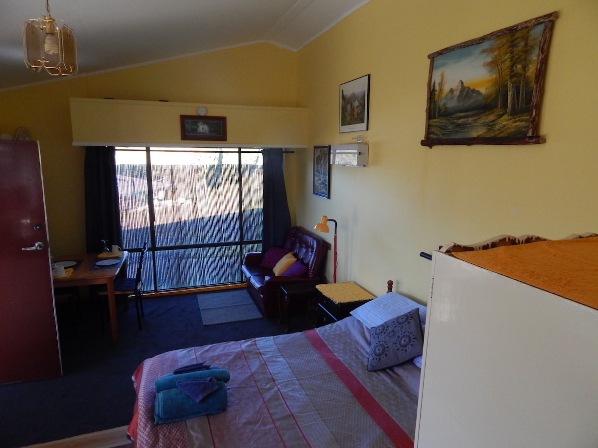 Angkop para sa mga mag - asawa at solong biyahero. Kasama sa self - contained na studio room na may double bed ang. Kusina at banyong en suite. Nakakabit ito sa pangunahing bahay, na may pribadong pasukan sa maliit na ektarya.. Kasama ang Internet, tsaa, kape, mapusyaw na sangkap ng almusal, plantsa, hairdryer at paggamit ng washing machine Malapit sa mga gawaan ng alak, strawberry farm, sa West Tamar tourist area, at Northern beaches. Malapit sa pangunahing kalsada kaya tahimik ang ilang ingay ng trapiko sa araw. Hindi angkop para sa Pag - kuwarentina.