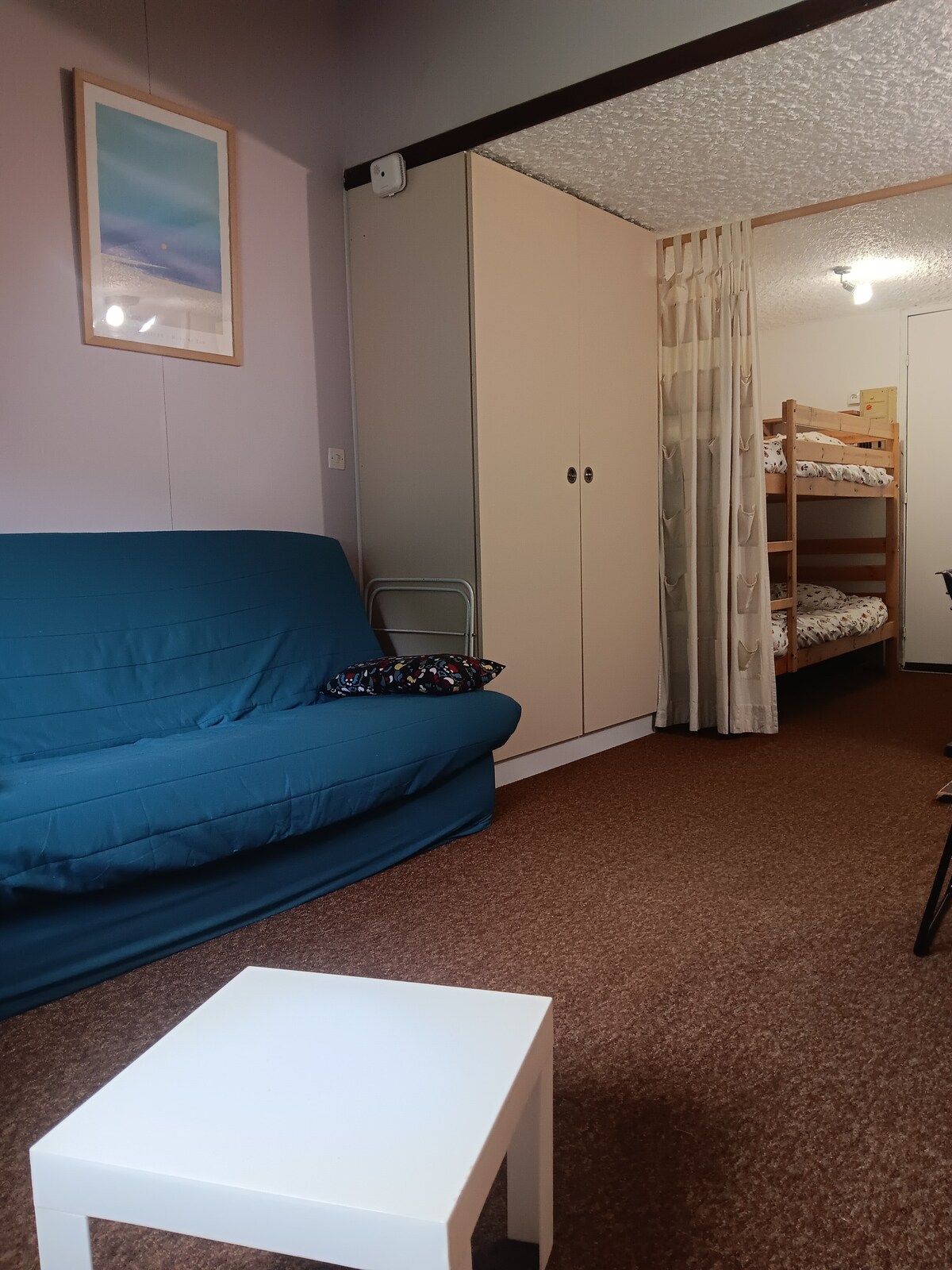 Studio na matatagpuan sa gitna ng resort, nag - aalok ito ng madaling access sa mga tindahan at aktibidad. Tahimik na tirahan na may elevator, may ski at boot locker ang studio sa lobby ng gusali. Binubuo ng sulok ng bundok na may 2 90x190 bunk bed, banyong may toilet at sala na may sofa bed. Kumpleto ang kagamitan sa kusina, vitro hob, refrigerator, microwave, senseo, raclette machine at lahat ng kailangan mo. * Hindi ibinibigay ang mga linen at hand towel. Hindi kasama ang paglilinis.