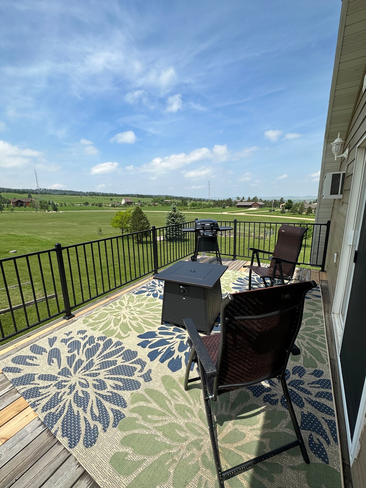 Enjoy the beautiful views in this quiet location while still having quick easy access to downtown Sturgis! Located just 2 miles from downtown, this 1 bedroom, 1 bathroom guest house sits on 8 acres, nestled in the trees. WiFi, large screen TV & enjoy relaxing on the patio by the gas firepit. Central location to many Black Hills attractions! Great views & deer & turkey are regular guests in the yard! Plenty of space for trailers! ** PLEASE NOTE: About 2 miles of well maintained gravel road**