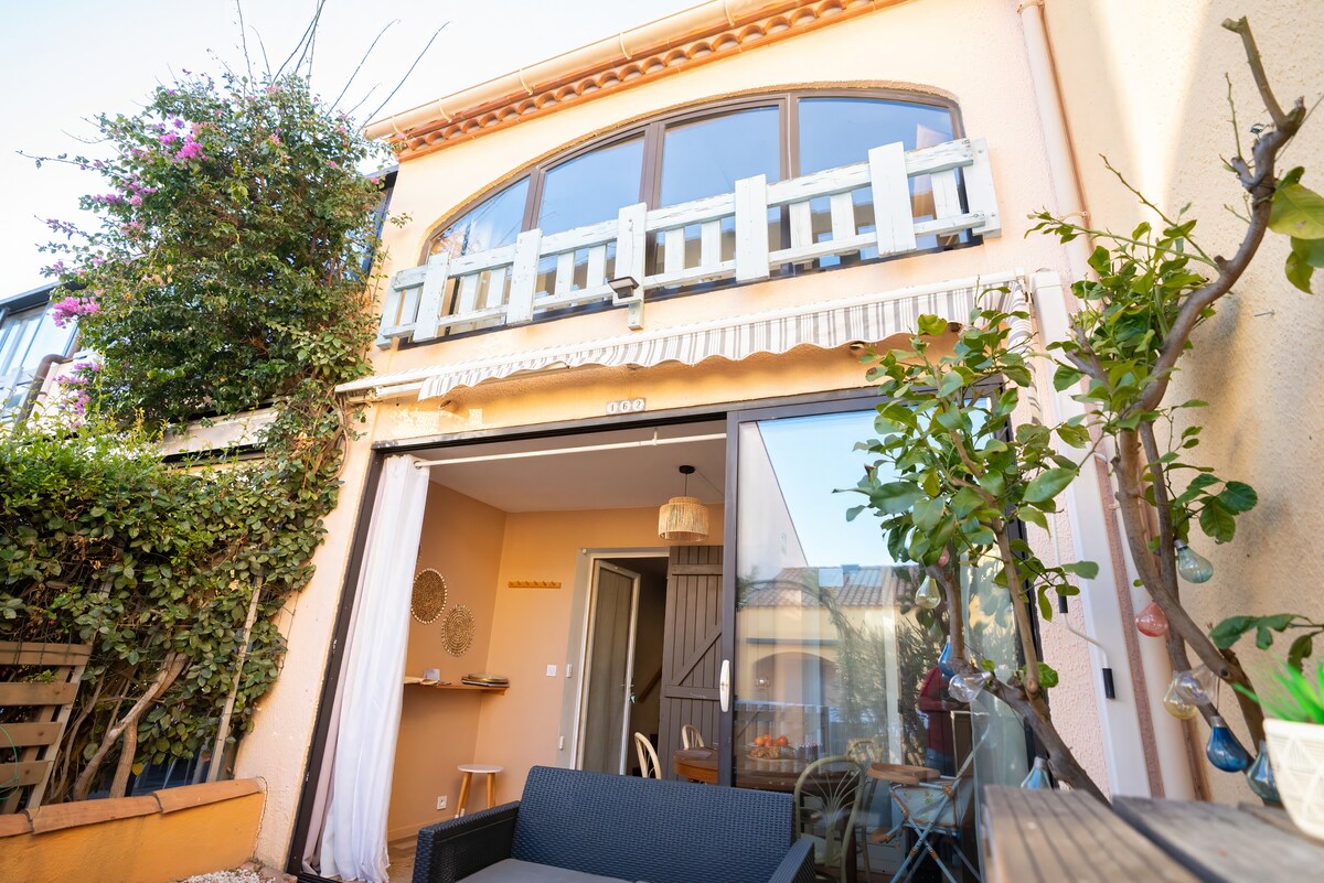 Maliit na bahay na 28 m2 na matatagpuan 200 m mula sa dagat, sa 66 at hindi sa Camargue, isang ligtas na tirahan na may air conditioning, isang pribadong parking space, Ang accommodation ay may hiwalay na silid - tulugan pati na rin ang mezzanine na may sofa bed Sa pribadong terrace, makakapagrelaks ka sa ilalim ng araw Sa tabi ng Espanya(45min) Collioure(30min) Perpignan(15min) Ganap na inayos ang tuluyan para mapaunlakan ka sa pinakamagagandang kondisyon Mga hayop na napapailalim sa