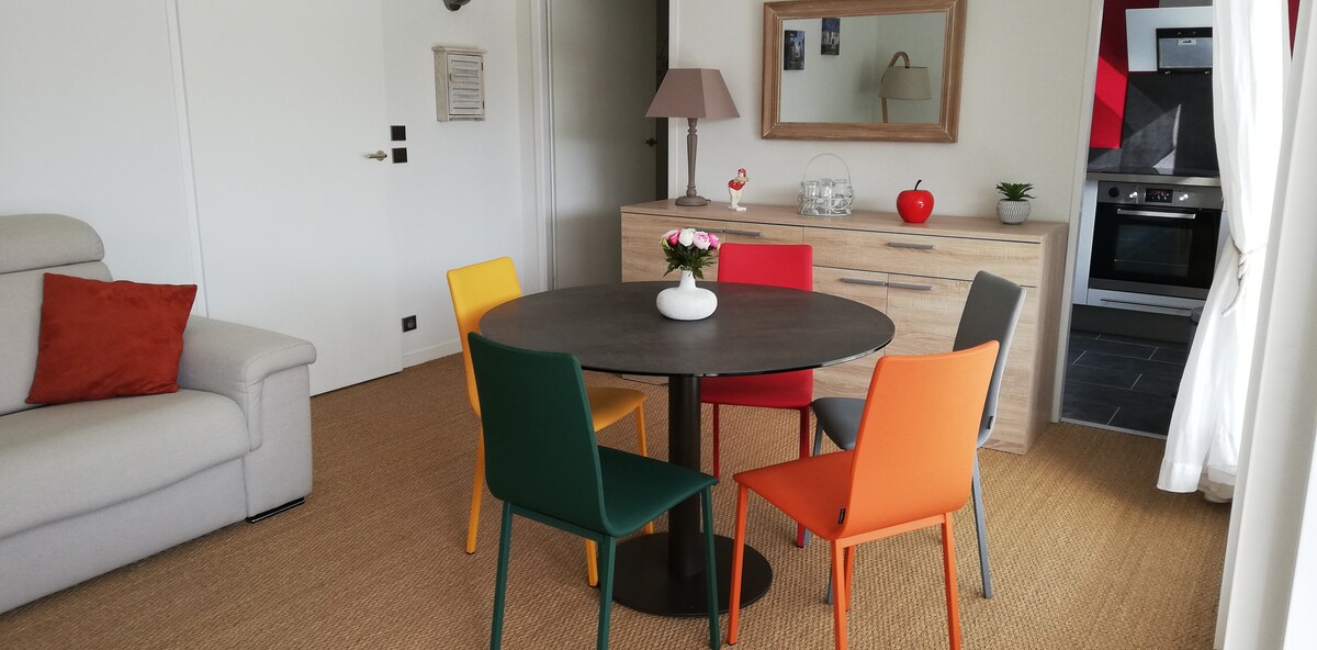 Apartment sa unang linya sa Bassin d'Arcachon, sa pagitan ng dagat at kagubatan. Les Jacquets, peninsula ng Cap-Ferret. Sa unang palapag ng 2013 na kahoy na bahay, sa isang pribadong kalsada. Direktang access sa beach. Komportableng naka-air condition na 60 m². 1 kuwartong may queen-size na higaan at natural latex na kutson, shower room, toilet, laundry room na may washing machine, kagamitan para sa sanggol, dryer, malaking living room-kusina na may 1 queen-size na higaan na may aparador. Nilagyan ang kusina ng de - kuryenteng oven, induction cooktop, microwave, refrigerator ng dishwasher. TNT WiFi.