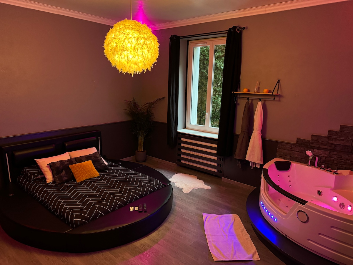 Pinagsasama ng "BUBBLE 2" Suite ang mga estetika at pag - iibigan, na nag - aalok ng eleganteng at natatanging kapaligiran sa pamumuhay. Inilagay ng arkitekto ang espesyal na pangangalaga sa mga detalye, na nagsasama ng mga de - kalidad na materyales at modernong kagamitan. Maaari kang magrelaks at magbahagi ng mga espesyal na sandali sa double balneo bathtub, na perpekto para sa pagrerelaks at pagtitipon. Maghanda para sa ilang seryosong sandali!