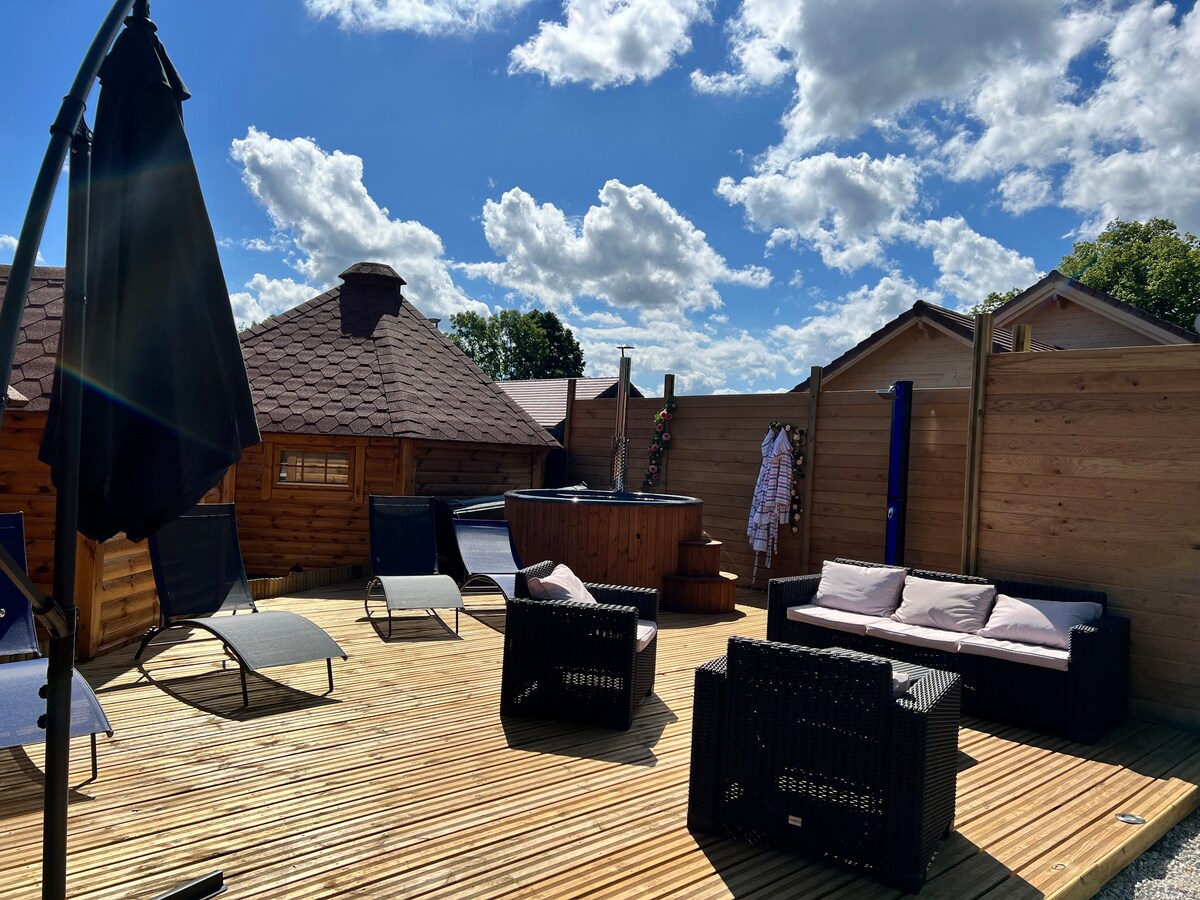 Nasasabik kaming tanggapin ka sa aming 4 - star na Ti 'Nid, sa tabi ng aming bahay, sa gitna ng isang magandang baryo ng alak sa ruta ng alak, malapit sa mga pambihirang lugar ( Château Chalon, Baume les messieurs, mga talon nito). At hindi malayo sa lawa at ski area na 40 minuto. Maraming serbisyo at aktibidad ang iaalok para mapahusay ang iyong pamamalagi. Tumuklas ng minimalist na pamumuhay na magtataka sa iyo: habang may kaginhawaan ng 4 - star hotel.😉