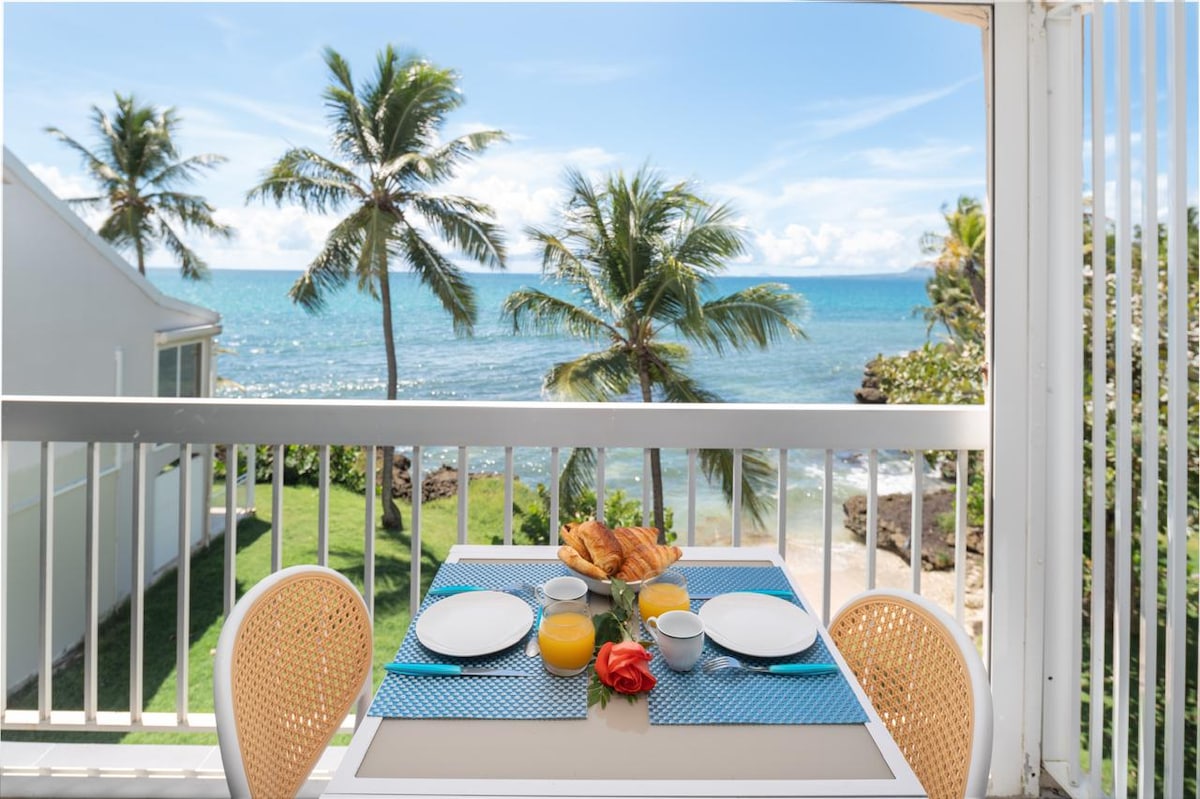 Nakaharap sa dagat, ang apartment na ito ay nag - aalok sa iyo ng nakamamanghang tanawin ng isla ng Gosier. Inayos sa maaliwalas na estilo at pagrerelaks sa mga kulay ng accommodation mix beige at asul na tono para mapalapit sa natural na kapaligiran ng iyong tirahan. Sa pagitan ng pag - inog ng dagat at lambot ng higaan, ikaw ay nasa iyong maliit na cocoon.