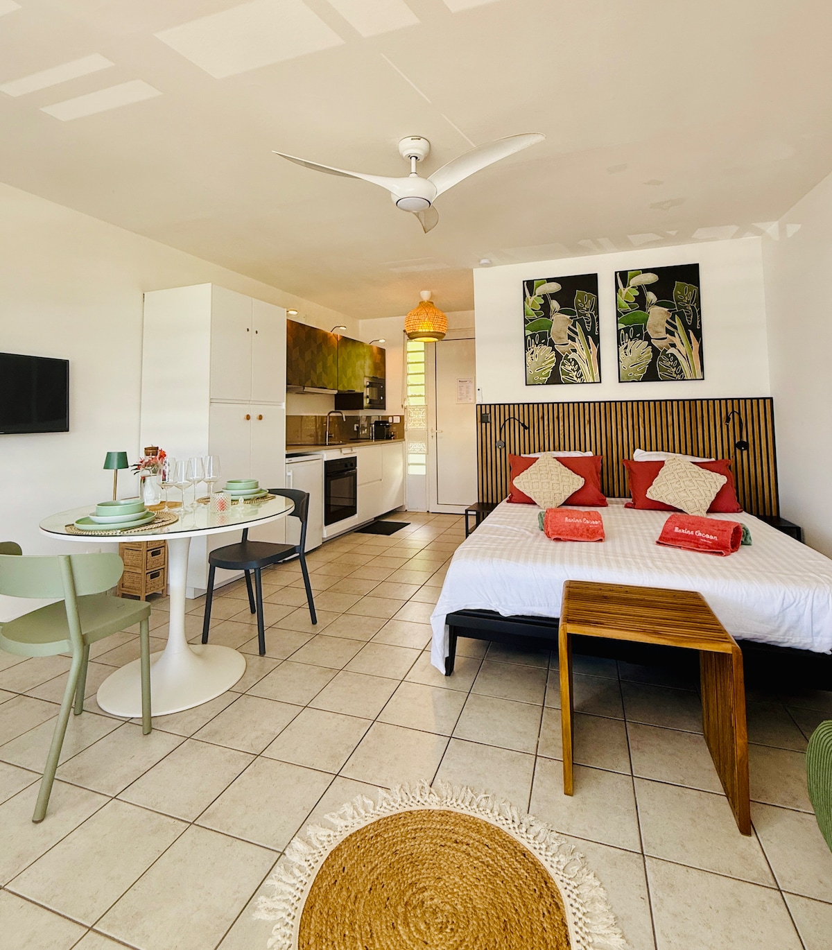 Profitez d’une offre spéciale pour un séjour détente avant la haute saison ! Idéal pour se ressourcer en Martinique sans se ruiner Bienvenue au Ti Colibri, un charmant studio moderne et décoré avec soin, situé à seulement 7 minutes à pied de la plage de Sainte-Anne. Idéal pour un séjour en couple, en solo ou en télétravail, vous profiterez du confort d’un logement tout équipé dans l’un des plus beaux villages du sud de la Martinique.