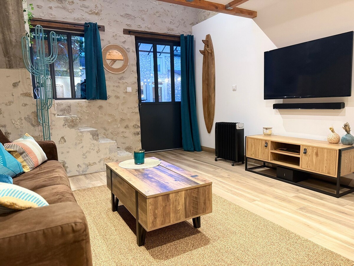 Isang kamalig na 85 m² na inayos noong 2022 na may lahat ng kaginhawa ay magiging perpekto para sa iyong mga katapusan ng linggo/pampamilyang bakasyon (1 double bed 160*200 posibilidad 1 baby bed). Mainam para sa mag - asawang may mga anak. Maximum na dalawang may sapat na gulang. Park/Pool/pétanque/swings/trampoline/board games/children's sand/hammock, Remote working wifi, Netflix Smart TV... Ilang kilometro lang ang layo ng lahat ng tindahan. Bawal ang mga party/professional na photo shoot/shooting/seremonya/alagang hayop. Walang karagdagang bisita.