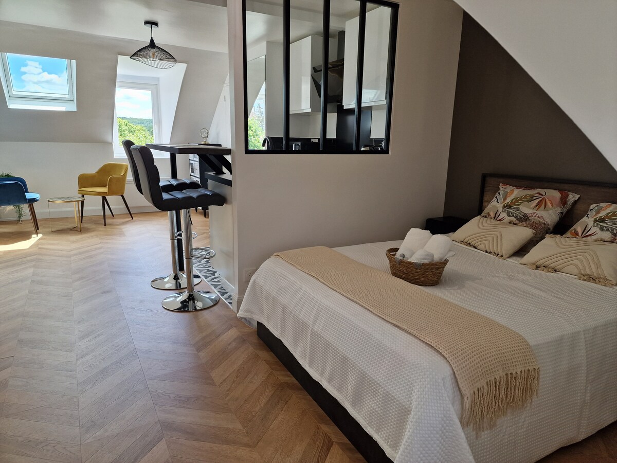Mabuhay ang karanasan ng pamamalagi sa gitna ng Etampes. Sa kaakit - akit na 35 m2 studio, malapit sa istasyon ng tren at mga tindahan. Gamit ang modernong dekorasyon at mga amenidad nito kabilang ang, oven, TV (netflix wifi), senseo coffee maker, dishwasher, refrigerator, washing machine, dryer, hair dryer... Nag - aalok ito ng lahat ng kaginhawaan na kailangan mo. Ilalagay mo lang ang iyong mga maleta at hayaan ang iyong sarili na madala ng katamisan ng buhay ng isang lungsod na may medieval na kaakit - akit at kagandahan ng bansa.
