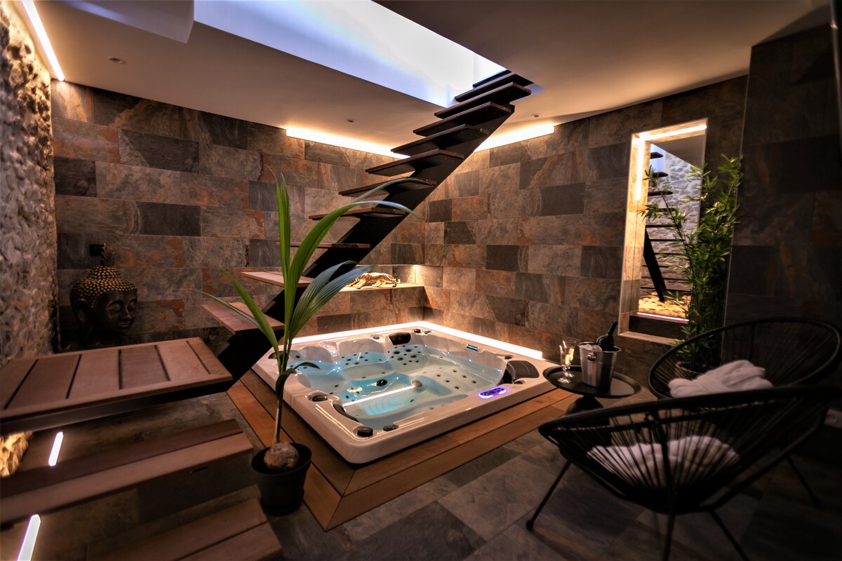 I - privatize ang buong bahay na ito; naisip bilang pahinga mula sa oras, pinaghahalo nito ang pagiging tunay at modernong kaginhawaan Isang intimate na kapaligiran, isang pribadong wellness area: isang tunay na cocoon para makapagpahinga; na may sauna at bathtub. Para sa isang espesyal na okasyon o maglaan lang ng oras para magkita, ang bawat detalye ay naisip na magbigay ng isang natatangi, banayad at nakakarelaks na karanasan. Dito, iniimbitahan ka ng lahat na idiskonekta, sa kasiyahan ng pagtikim sa kasalukuyang sandali.