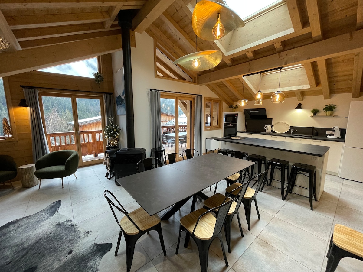 May spa ang cottage: hot tub, sauna, at solarium. Nilagyan ang lahat ng kuwarto ng dressing room at banyo (shower at toilet) at para sa ilang opisina. Bukas ang sala sa kusina, na may malaking lounge na may wood burning stove, malalaking bay window para ma - enjoy ang tanawin at magandang terrace. Access sa hot tub araw - araw, pribadong oras ayon sa iskedyul. Matatagpuan sa gitna ng Champagny, malapit sa mga tindahan, ski area.