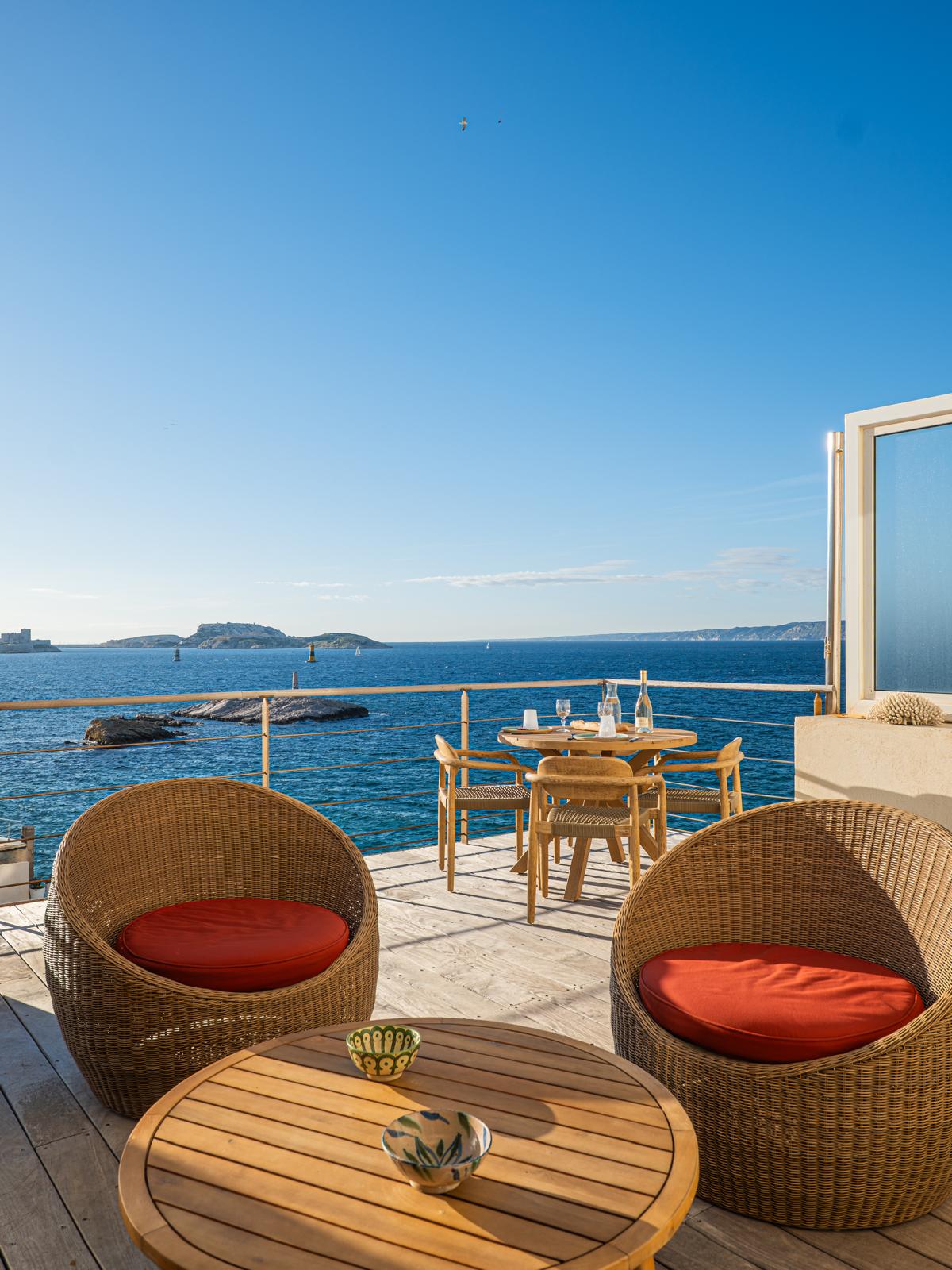 The apartment « Marsiho » enjoys the most beautiful view of Marseille, 180 degrees over the Vieux Port, facing Notre Dame de la Garde, and a beautiful light with its south-facing wall of windows. It is fully air-conditioned and has been refurbished by an architect with high quality materials and a selection of furniture in a mediterranean spirit.