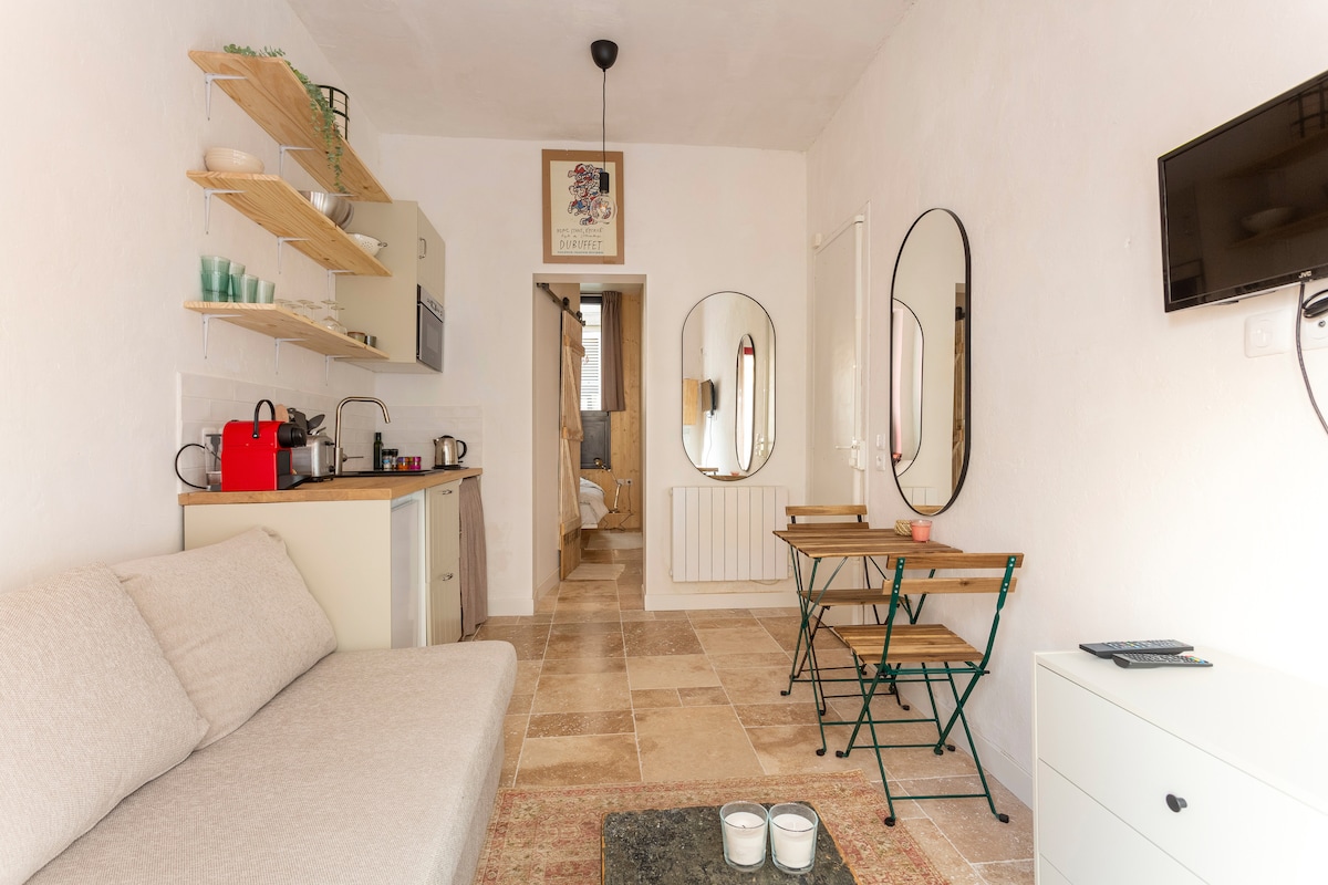 Ang pambihirang tuluyan na ito, na matatagpuan sa Montmartre, ay unang studio ng pintor bago maging kaakit - akit na apartment. Sa isang tabi, nag - aalok ang sala ng tanawin ng grocery store ni Amélie Poulain. Sa kabilang panig, may malinaw na tanawin ang kuwarto, na nakaharap sa timog. Walang hagdanan papunta rito. Nasa ground floor ito.