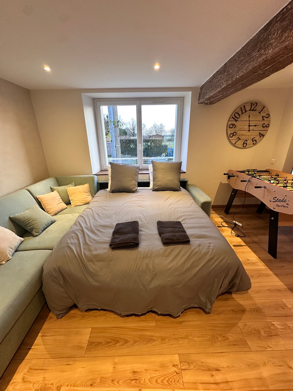 Malugod kang tinatanggap nina Mickael at Magali sa isang lumang inayos na farmhouse . Ang cottage ay perpekto para sa mga pista opisyal ng pamilya,ang palaruan ay magpapasaya sa iyong mga anak pati na rin ang mini farm (mga manok,baboy,gansa at biquettes...) Ang sakahan ay may isang lagay ng lupa ng 1.3 ektarya. Isang cottage na 110 m² at may 3 silid - tulugan at tunog na nilagyan ng kanilang banyo na may toilet .