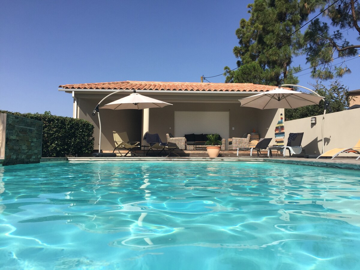 Nice naka - air condition na villa T3 na may 66 sqm (m2) na inuri ** *. Pinainit na swimming pool, at terrace ng 80m2. May bulaklak at may lilim na hardin sa ilalim ng mga puno ng olibo, lahat ay nasa isang kalmadong kapaligiran. Kakaayos lang ng Villa at nagbibigay ng lahat ng kinakailangang kaginhawaan para matiyak na magiging kaaya - aya ang bakasyon mo. Mabilis at madaling ma - access (10 minutong lakad) papunta sa mga tindahan, bar, restawran, at libangan sa sentro ng lungsod at sa marina. 10 minuto lang ang layo ng pinakamagagandang beach sa isla.