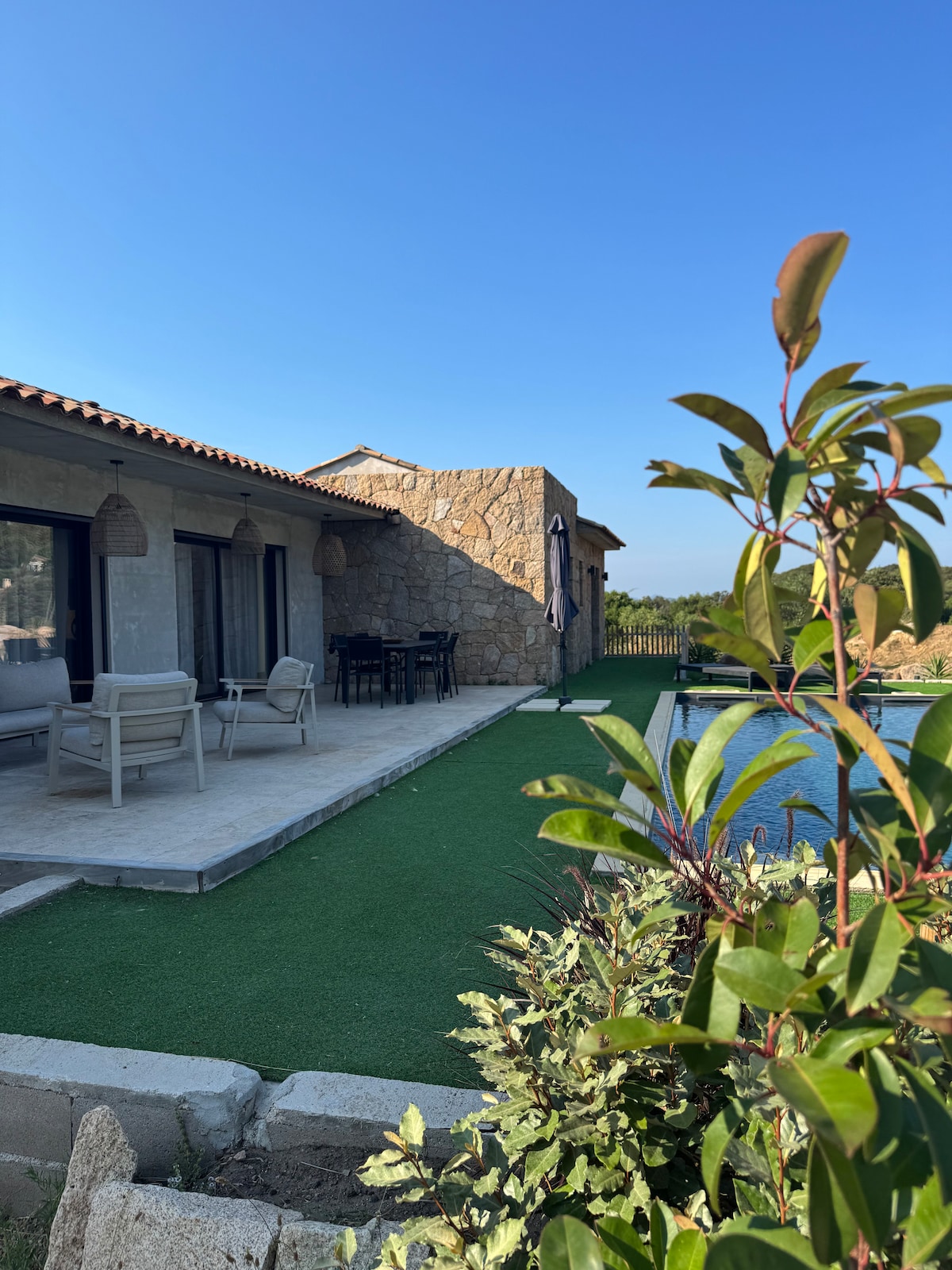 Venez profiter du temps long d'un repas d'été en terrasse, dans ce cadre apaisant où la vue sur la forêt, et le calme du lieu permettent de décompresser, Après s'être fait plaisir avec un coktail dans la piscine chauffée, ou la lecture d'un bouquin dans la baignoire de la Masterpiece, vous pourrez aisément vous rendre à la plage la plus proche, qui est à 10min, ou profiter du charme d'une rivière Corse, à 5min de la villa. PS: les frais ménage sont remboursé si effectué par vous même